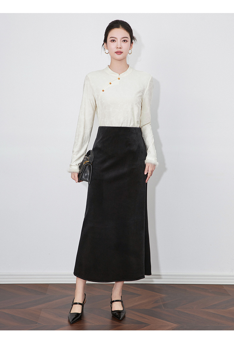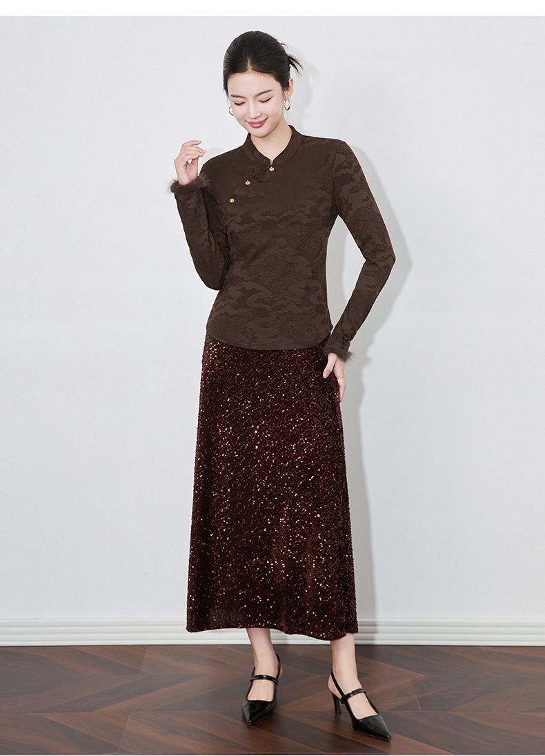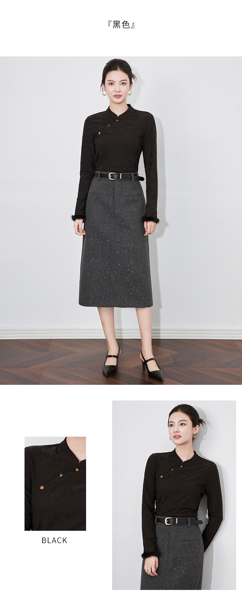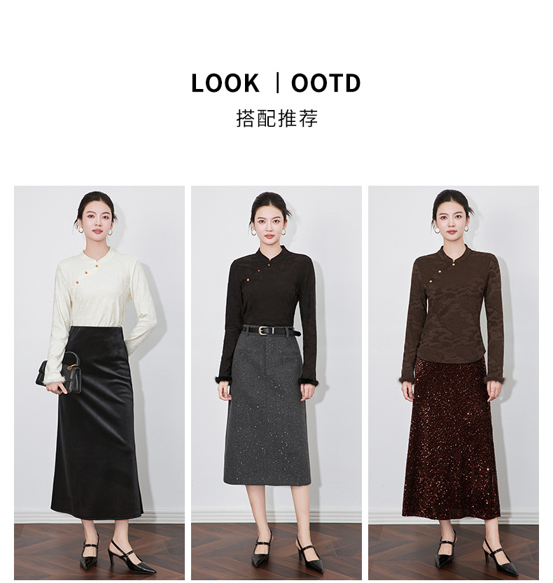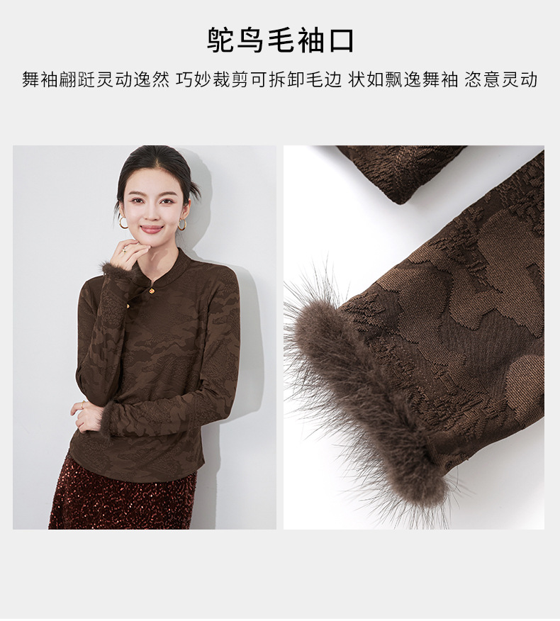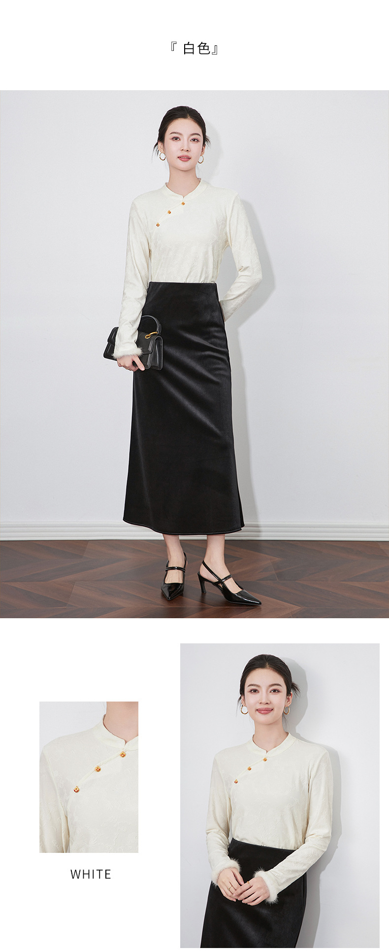 【高货wl】全新升级【铂金会员220/天猫299/差价79】(03417) 洛诗琳冬季新款新中式斜襟盘扣提花小V领国风磨毛打底衫