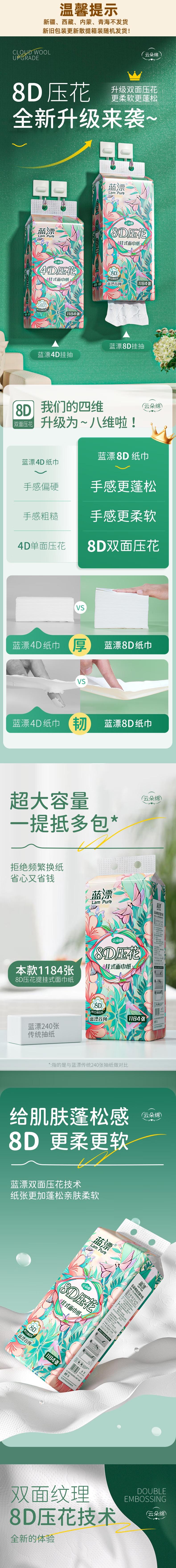 蓝漂 悦色花园白色气垫挂式抽纸4层1184张*1提 LP0YSC01T
