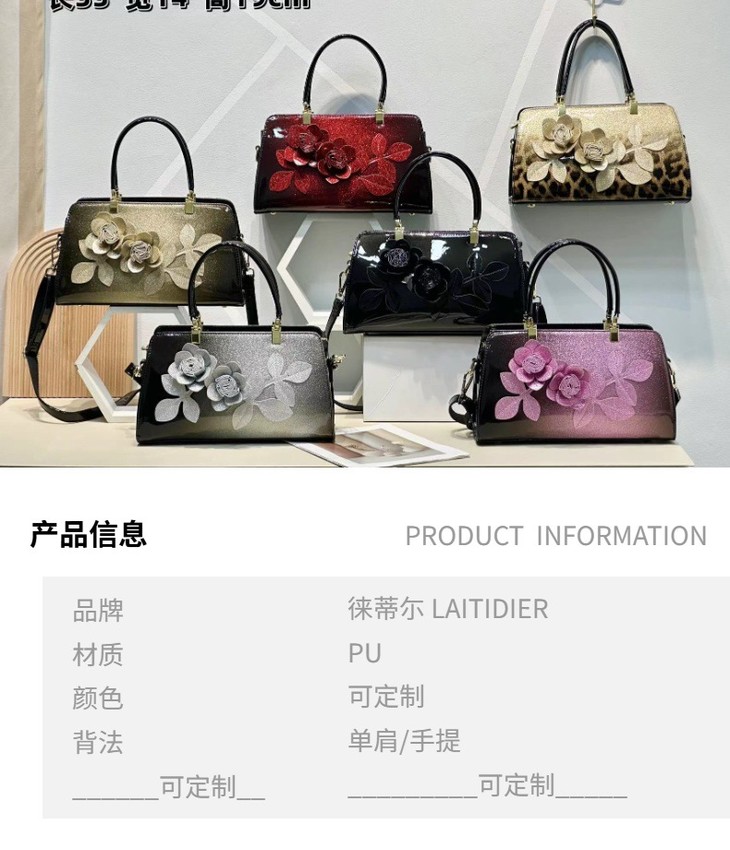 时尚花朵大气手提包女百搭绣花妈妈包QDE2411
