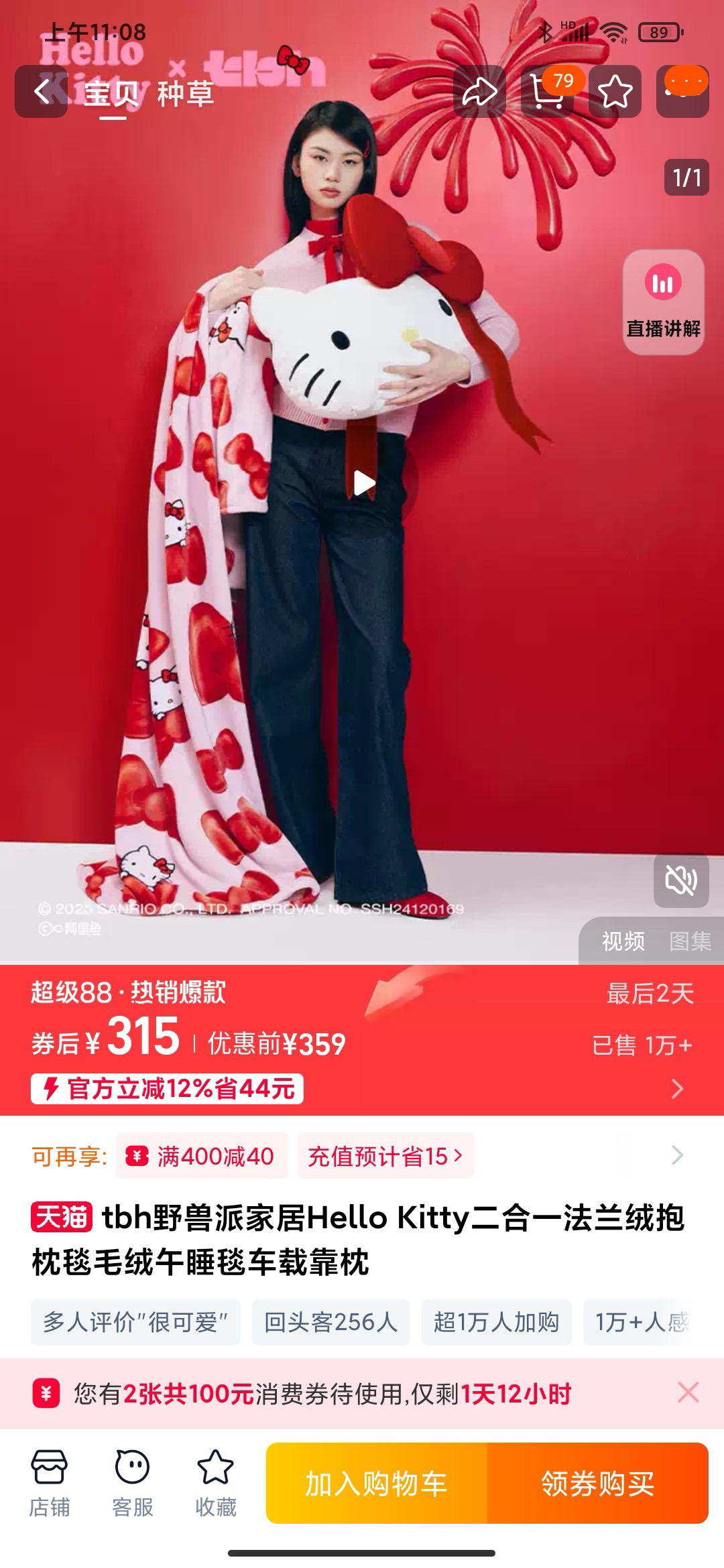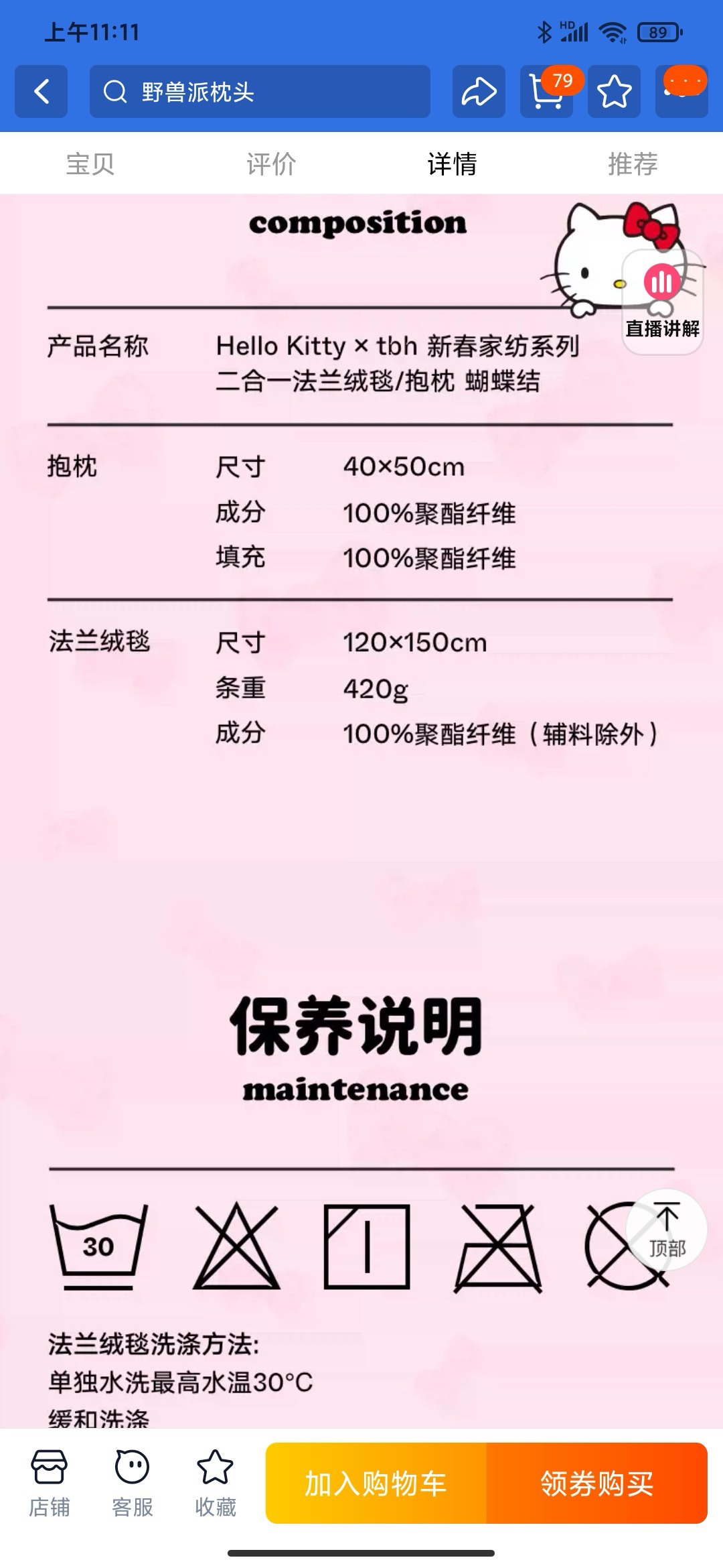 🔺野兽家&hello kitty联名款二合一抱枕盖毯