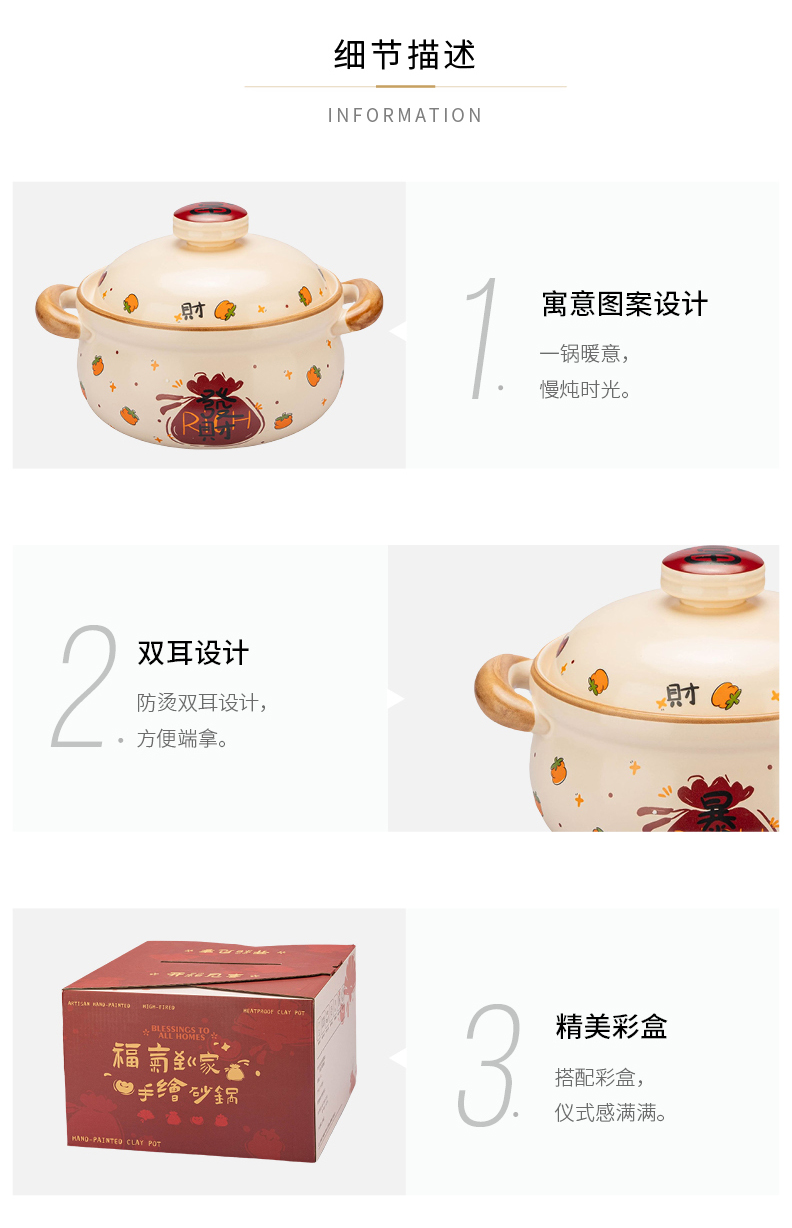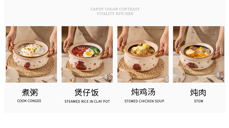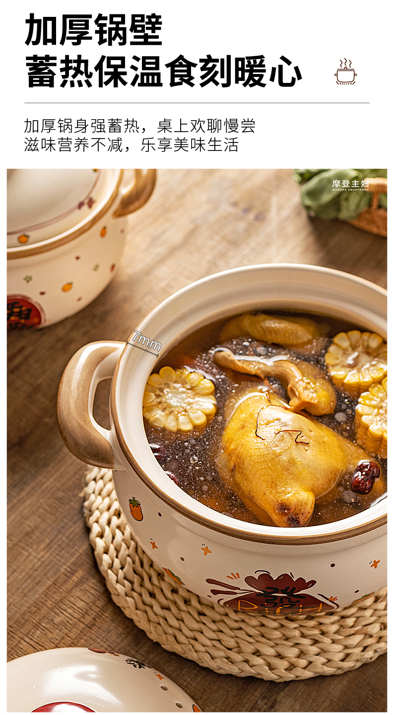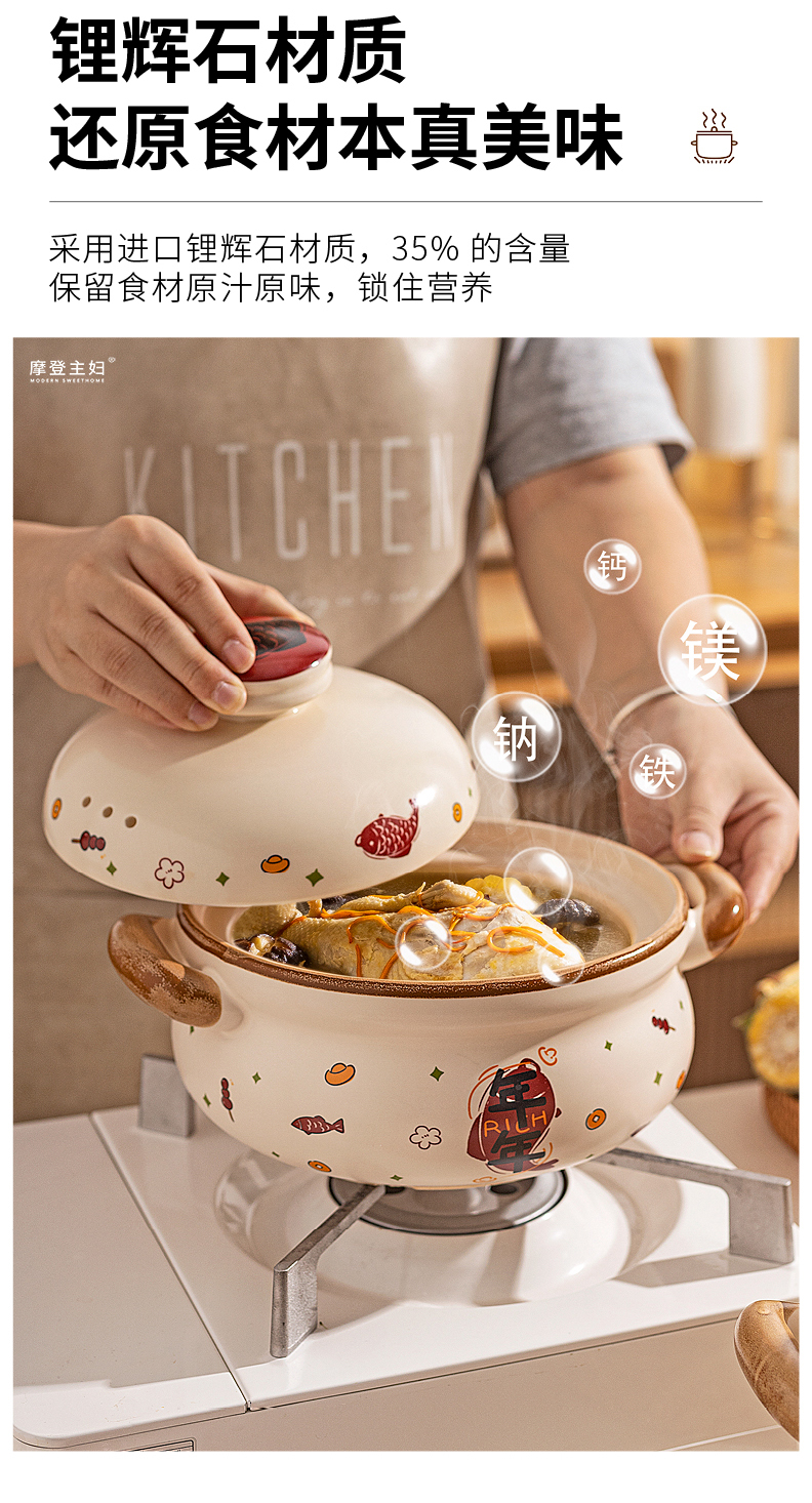 摩登主妇陶瓷炖锅带盖汤锅家用厨房煮粥煲汤小号砂锅炖盅