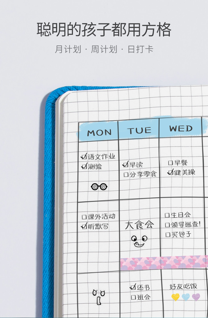 uek笔记本子儿童记事本学生简约日记本子文艺精致错题本空白方格本可爱少女心办公用品商务简约工作记录本子