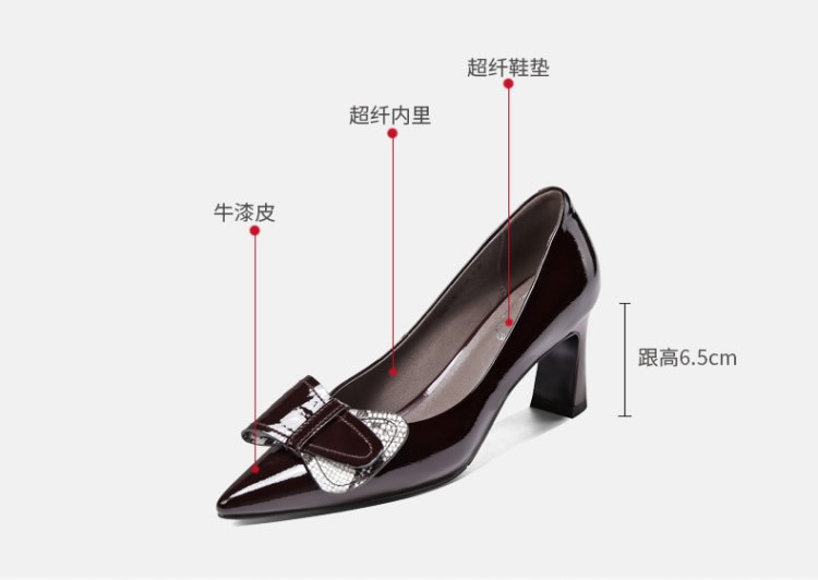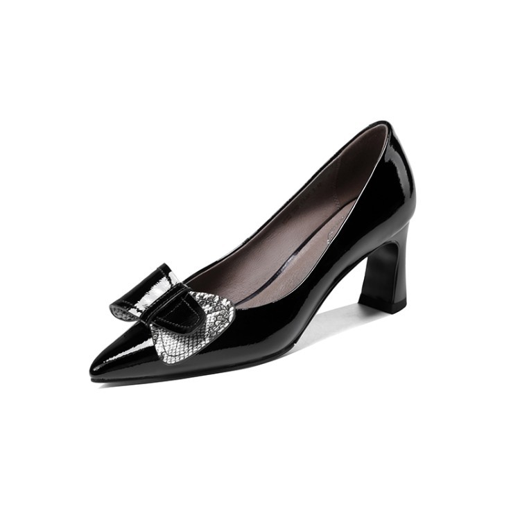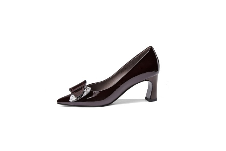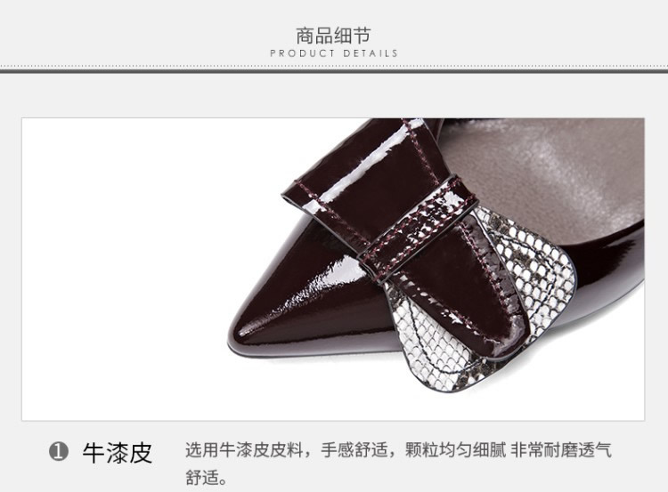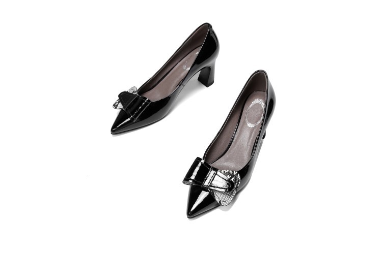 OLD-K522新款时尚真皮尖头蝴蝶结浅口粗高跟鞋