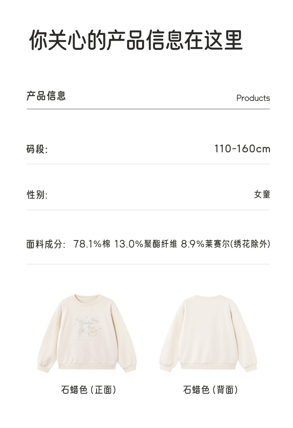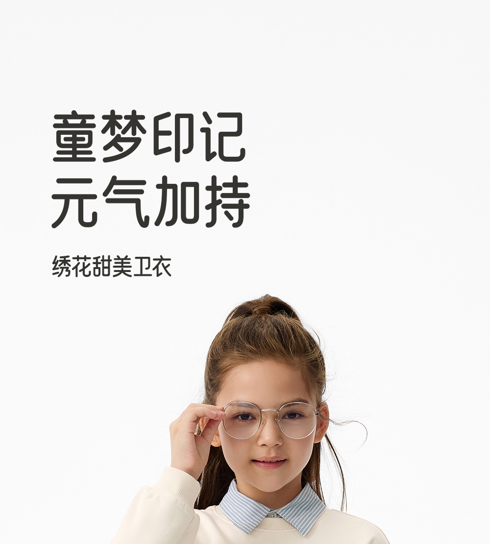 英氏儿童卫衣春秋女童长袖卫衣保暖圆领百搭休闲卫衣中大童套头衫