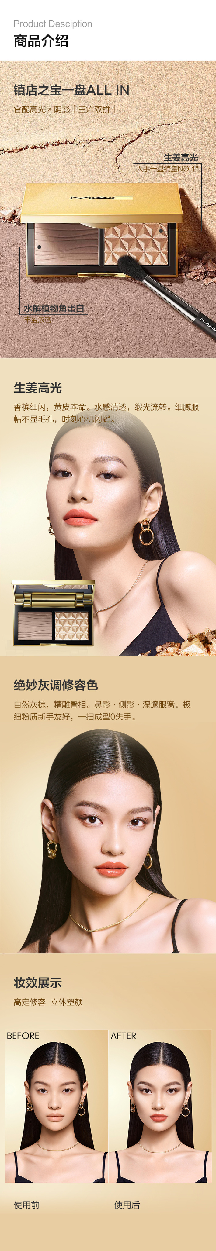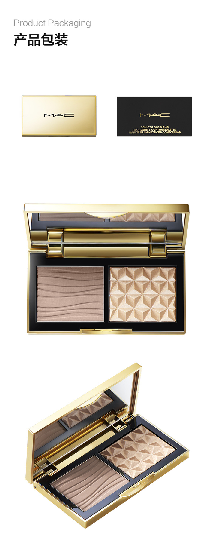 【门店直发 支持同城配送】MAC/魅可小金盒双色盘生姜高光修容盘哑光鼻影omega 7g/盒