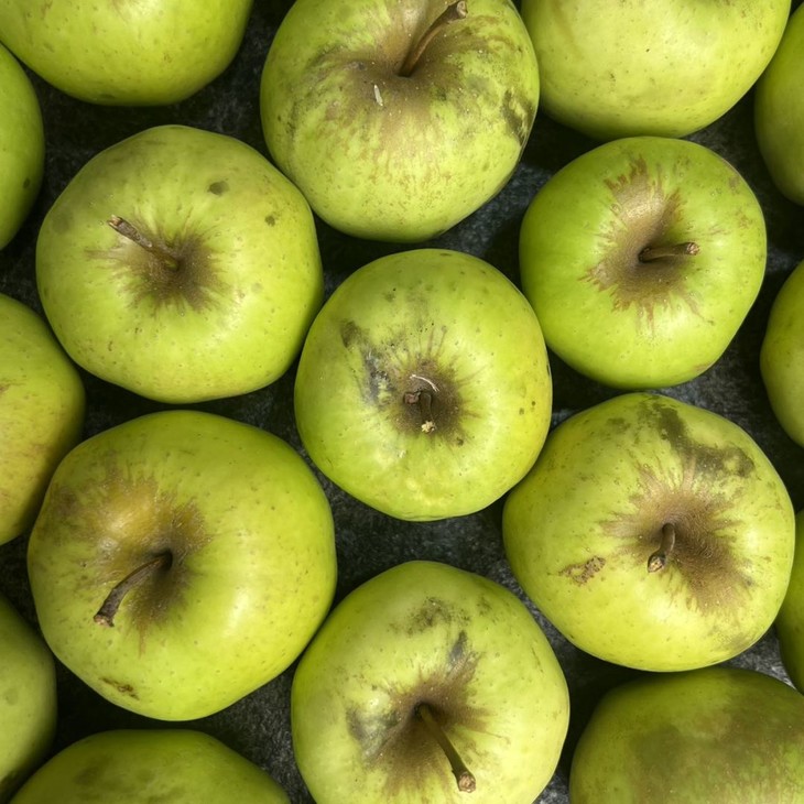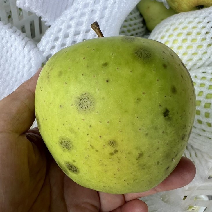 今年雨水大,虫害较严重,青苹果完全不使用农药杀虫,所以有些果子上面有疤痕,红色斑点等虫子留下的痕迹,虽果子外表不好看,但食用不影响哦,请勿以此售后哦。