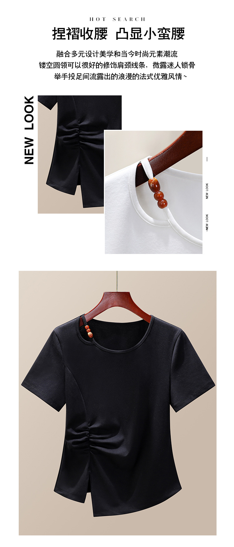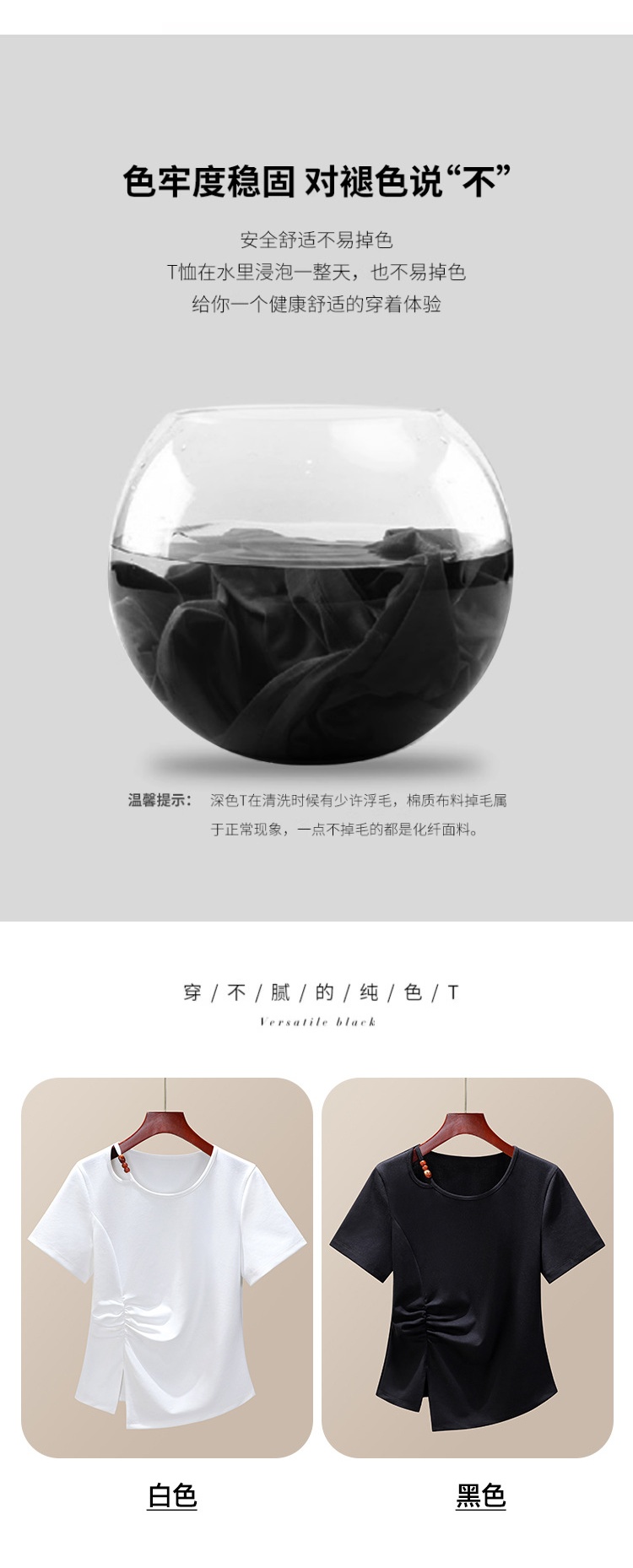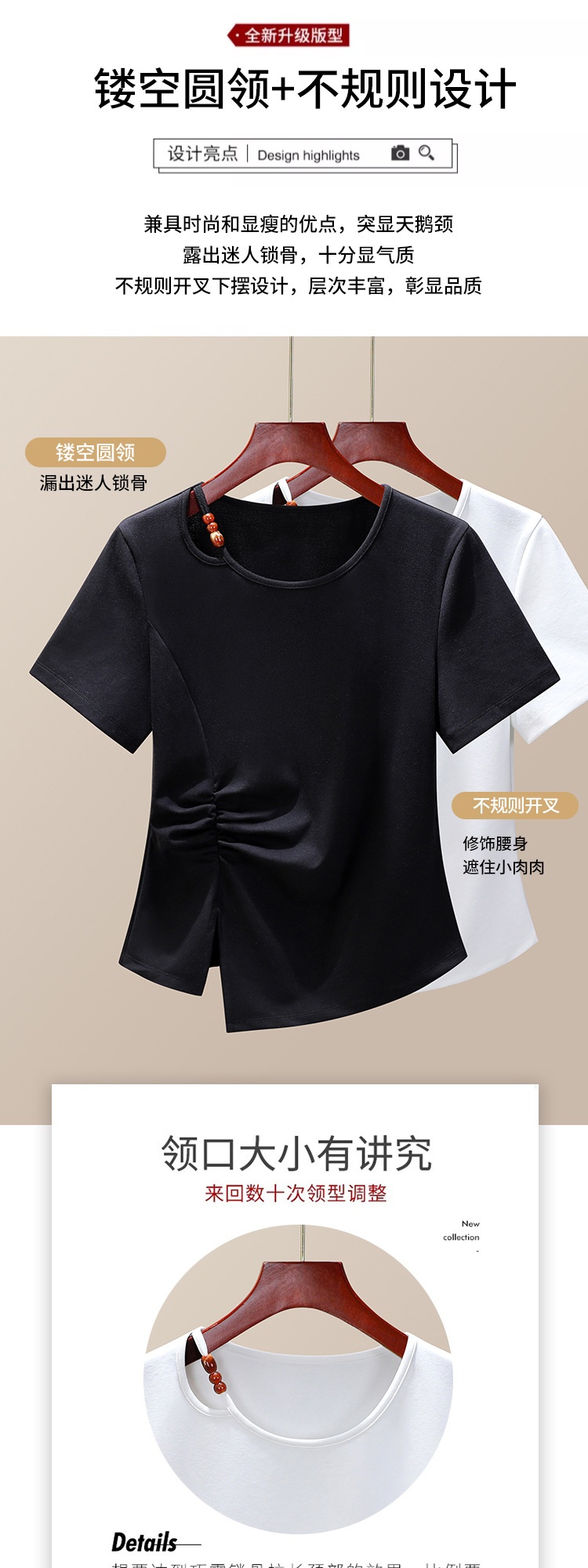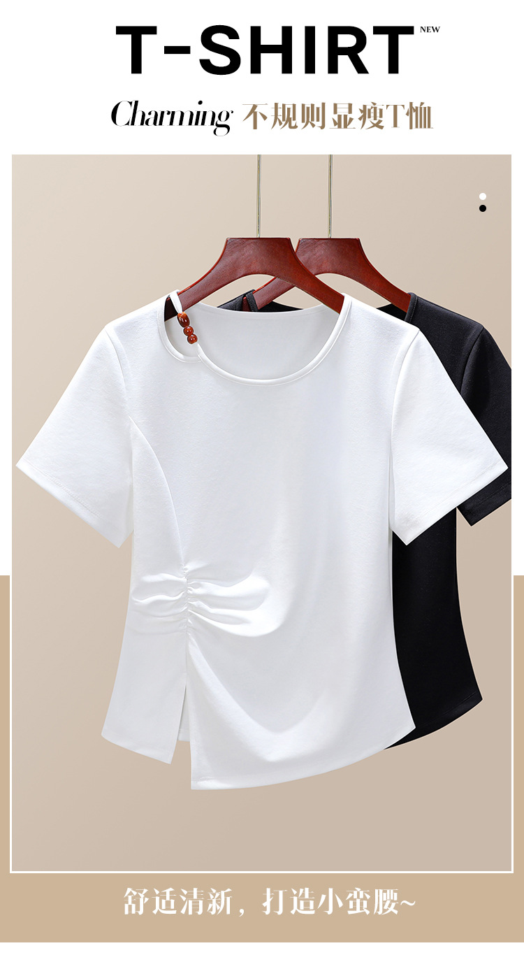 「自j」全新升级【铂金会员109/天猫149/差价40】(03206)洛诗琳不规则设计感T恤2025夏季小众褶皱开叉正肩显瘦上衣女