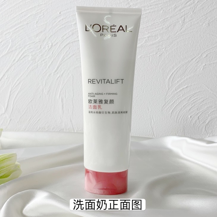 欧莱雅复颜洁面乳125ml👍卸妆洁面二合一,平价中的战斗机😎。这一系列的配方温和,含有独有的抗皱科技,主打功效深层洁面、补水保湿、紧致抗皱👊、淡化细纹。富含保湿因子,洗完不会有紧绷感,全天都可以保持肌肤滋润状态💦。质地是有一点稀的粘稠状,清洁度非常OK!⚠️含水杨酸成分,敏感肌与易过敏肌慎用!