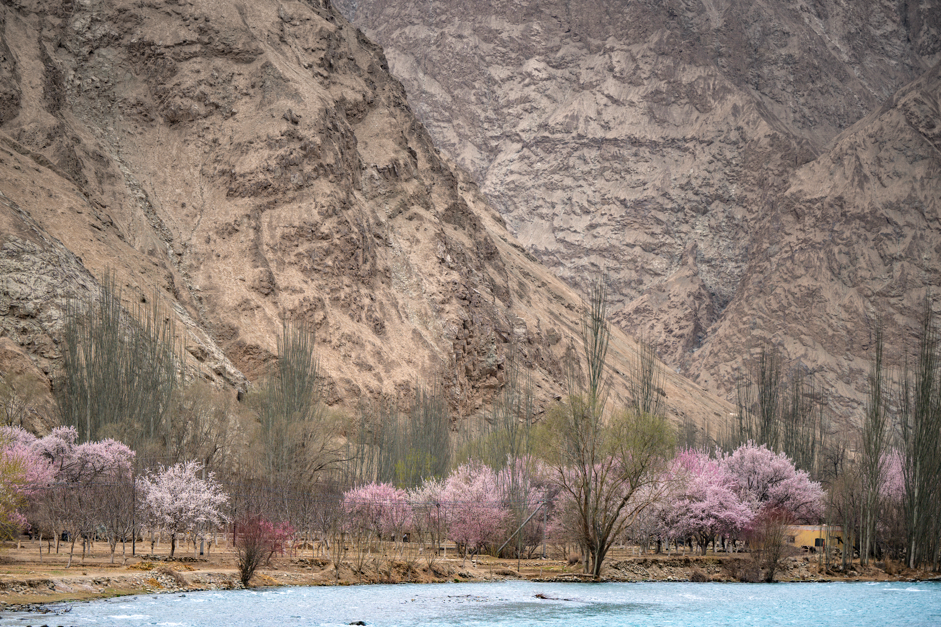帕米尔高原早春最美的景物是怒放的杏花。在塔什库尔干县到大同乡的196公里高原峡谷中,杏花分布着在十几个小山村中。