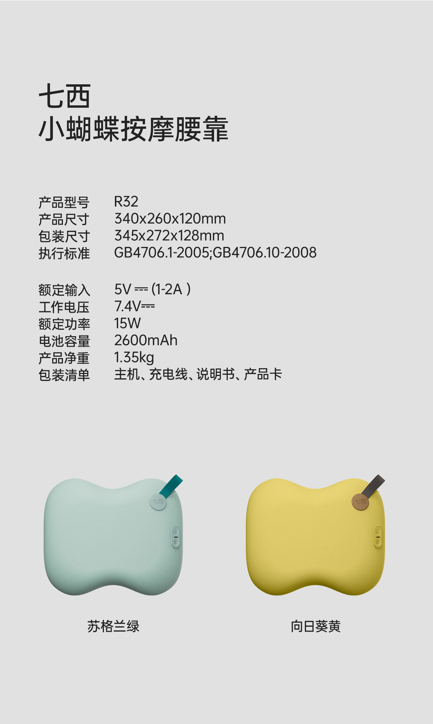 7C/七西腰部按摩器颈椎腰部背部按摩仪按摩枕揉捏家用