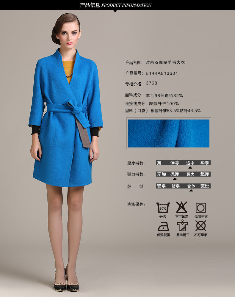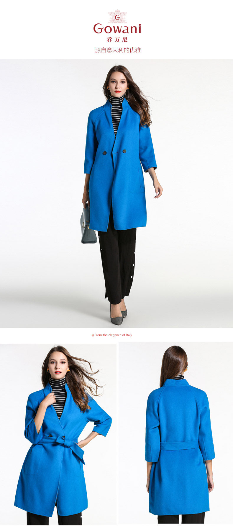 乔万尼冬季呢子大衣女简约时尚中长款修身显瘦双面羊毛呢子外套E144A813