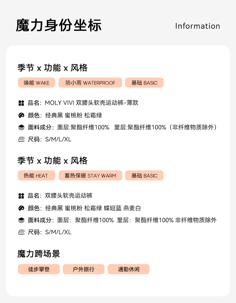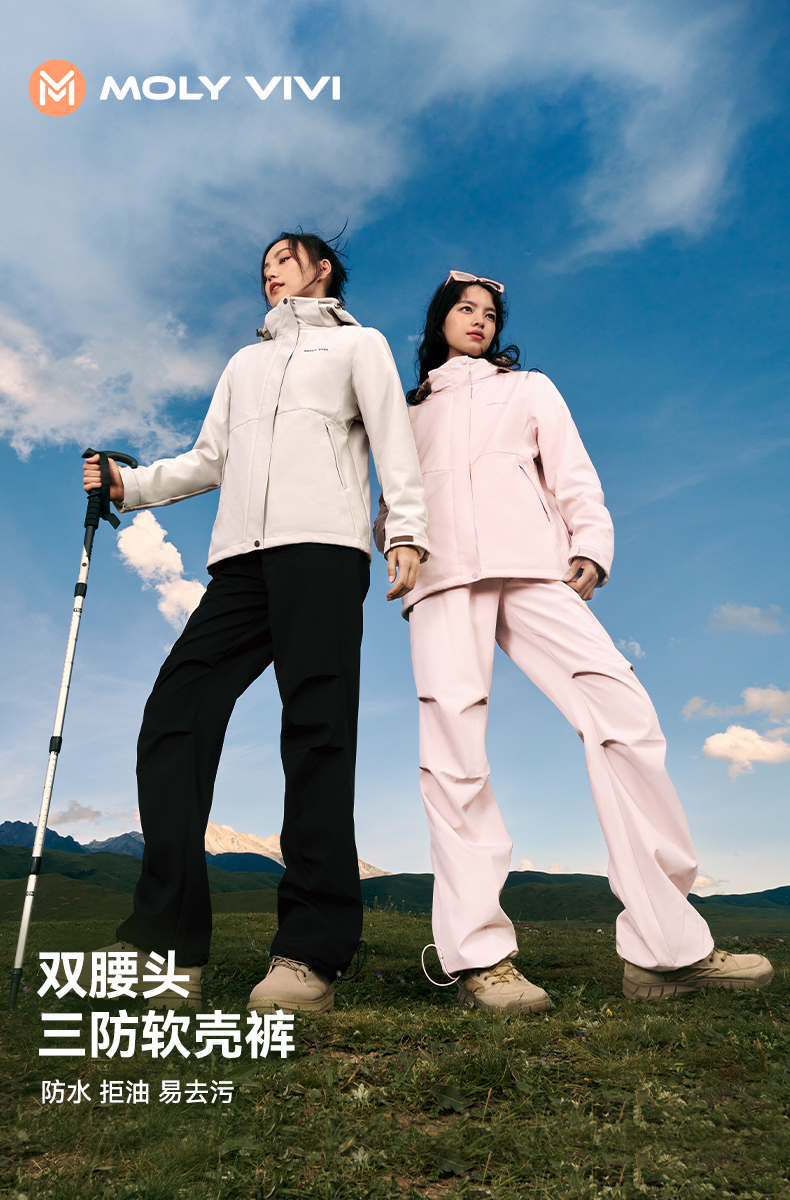 MOLYVIVI魔力薇薇双腰头软壳裤 春夏薄款/加绒保暖款 防风防雨水雪山裤徒步登山裤 宽松户外休闲直筒修身长裤