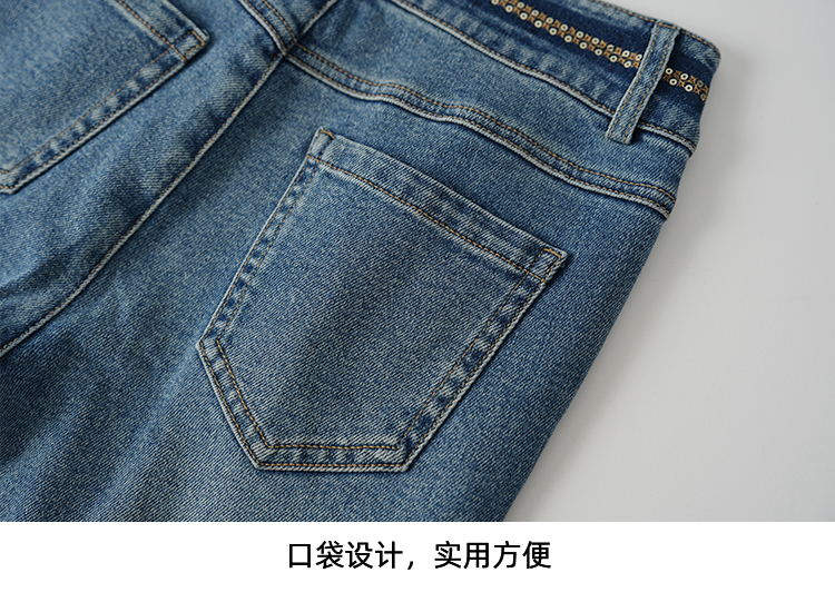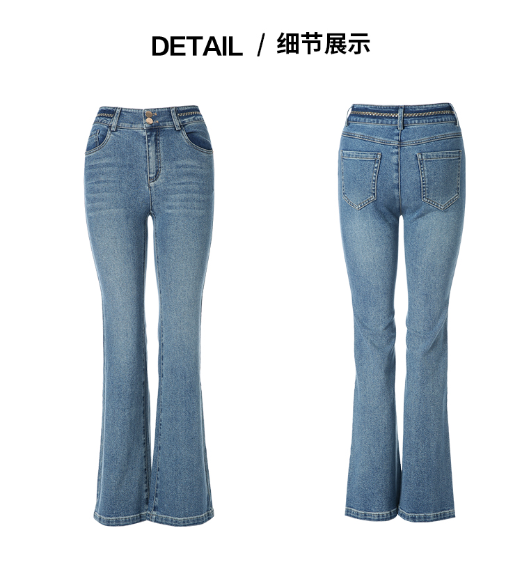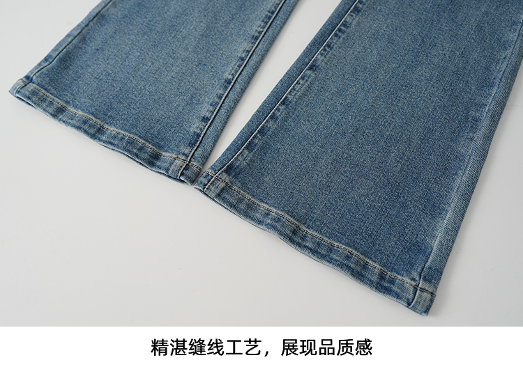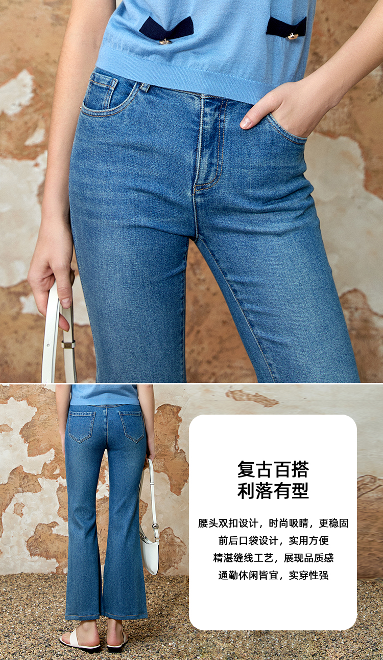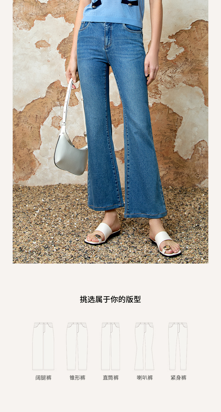 EITIE爱特爱柔软舒适微弹高腰直筒显瘦微喇蓝色牛仔裤春新款8105819