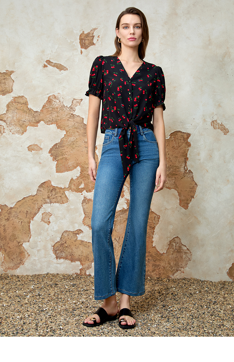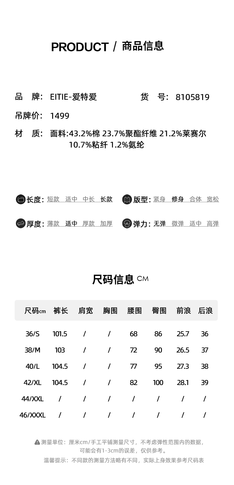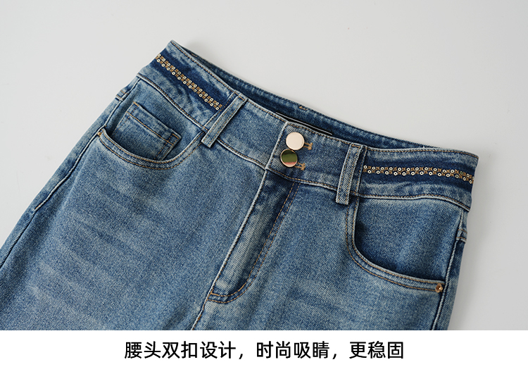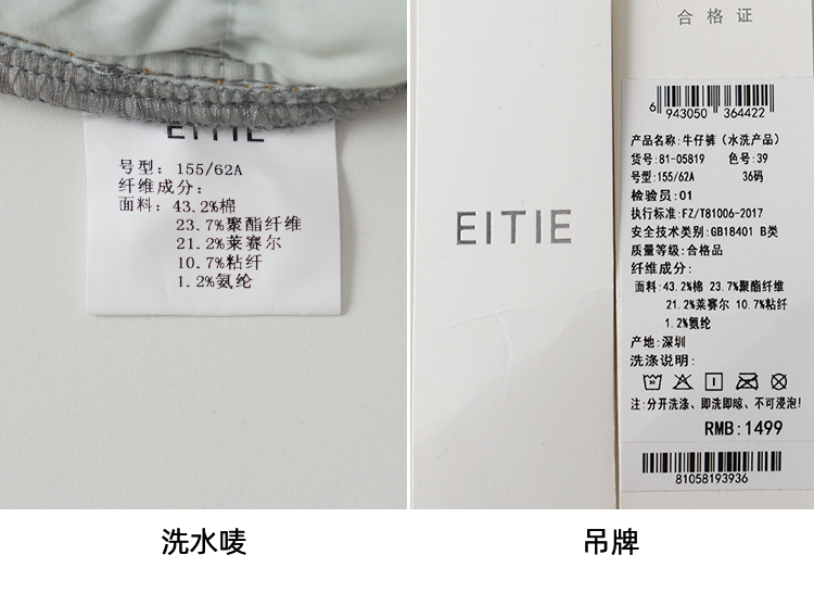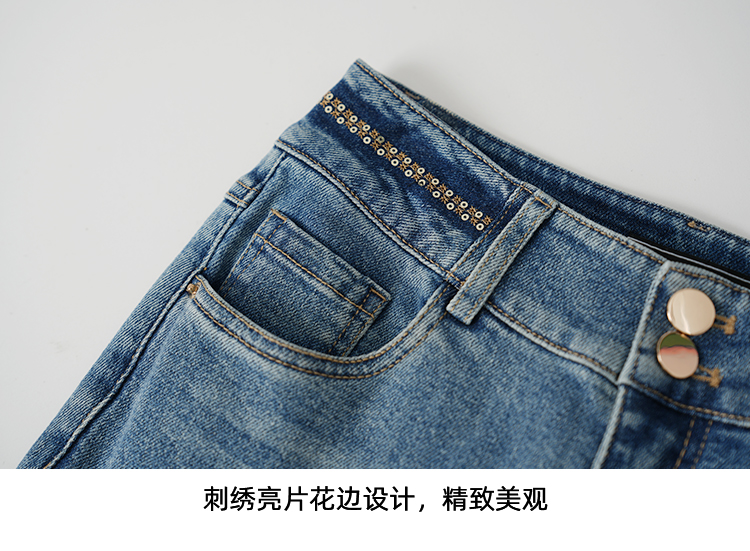 EITIE爱特爱柔软舒适微弹高腰直筒显瘦微喇蓝色牛仔裤春新款8105819