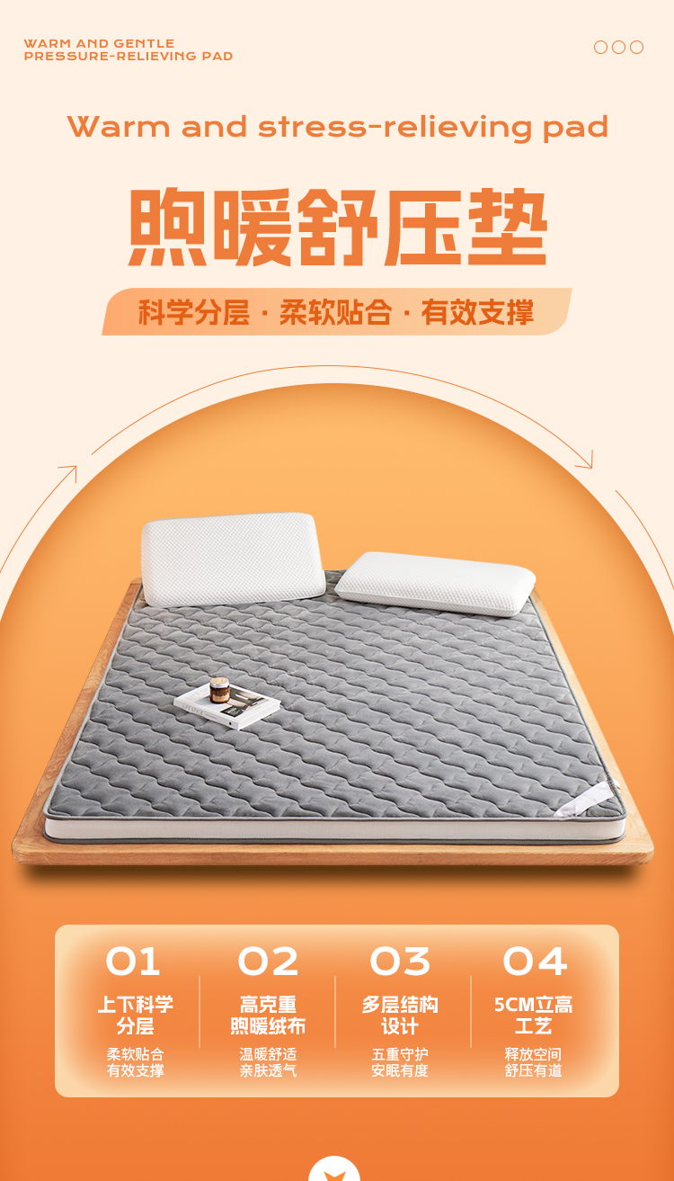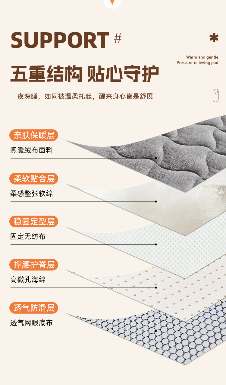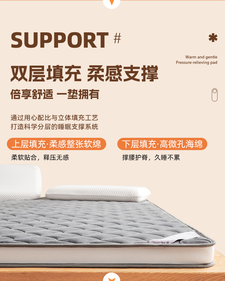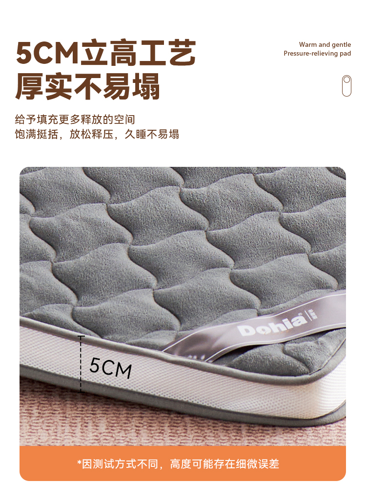 多喜爱 格瑞煦暖舒压垫【5CM立高】【双层填充】【高克重煦暖绒】科学分层 多孔透气 蓄热保暖