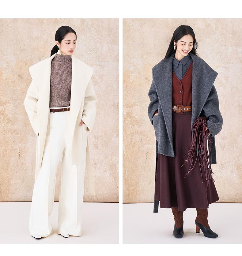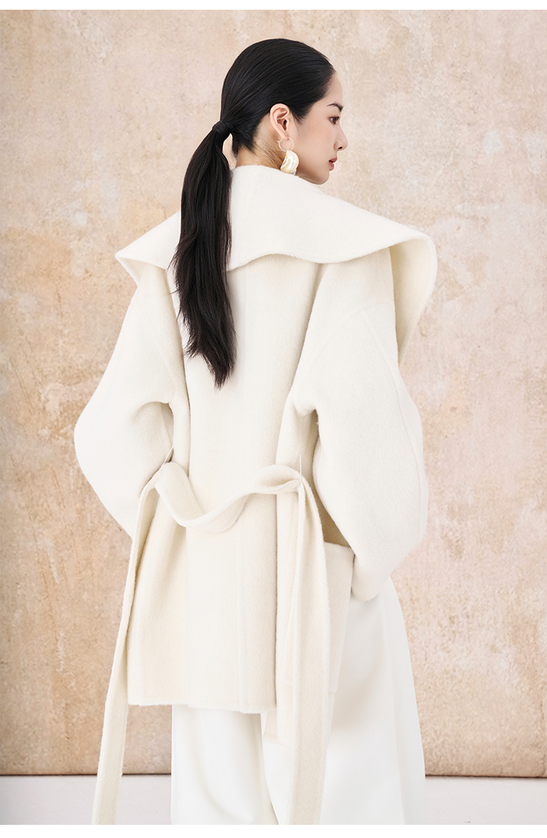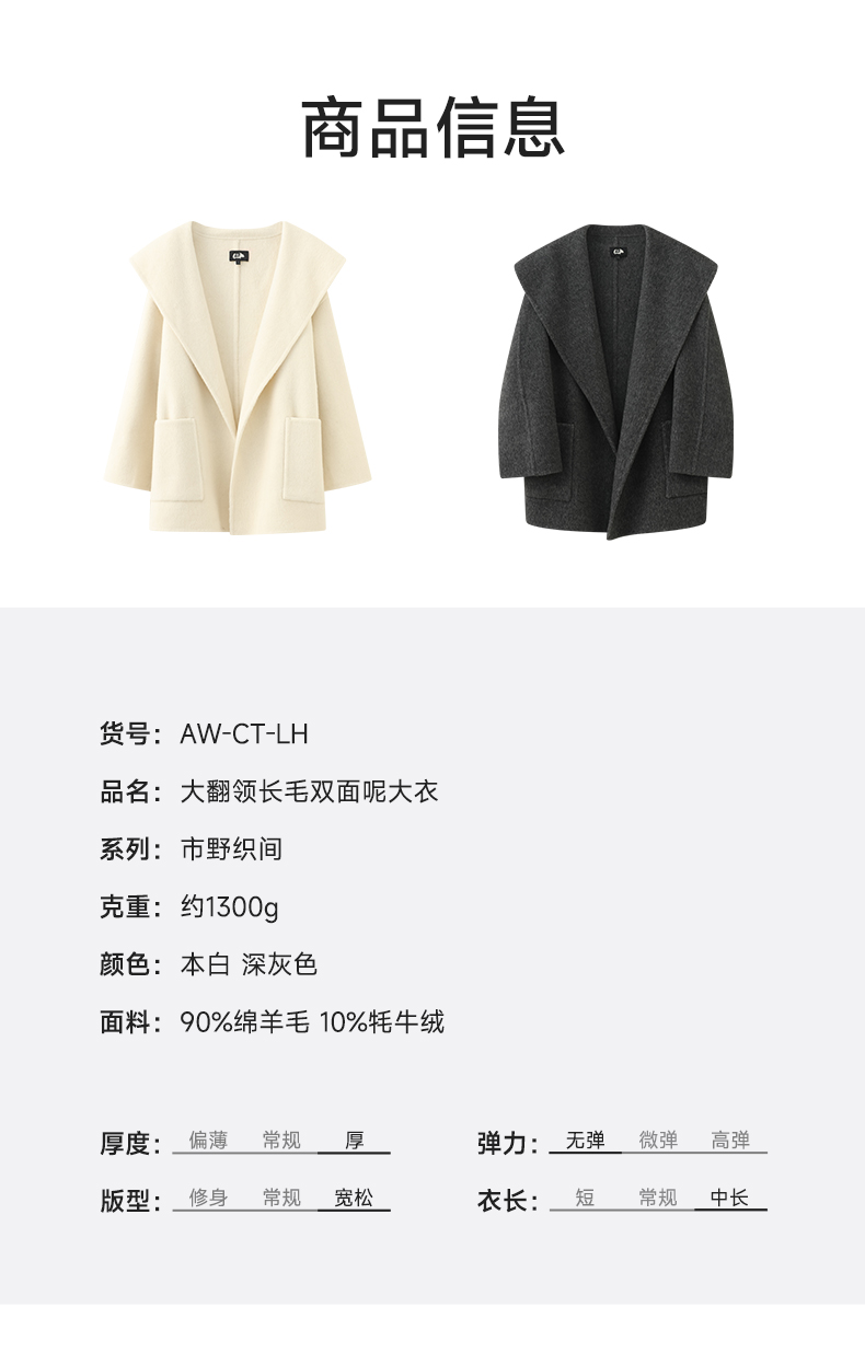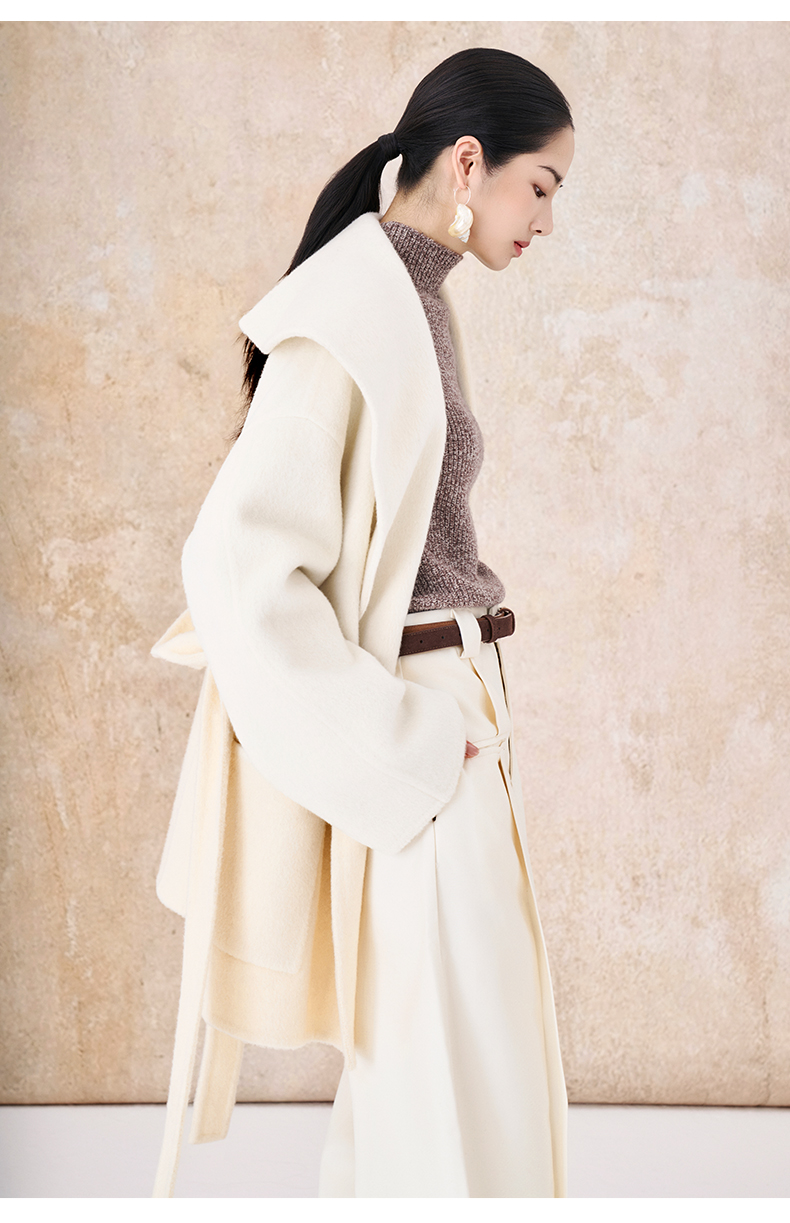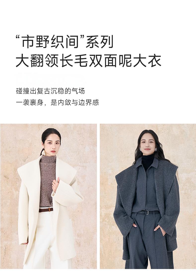 【市野织间】女士大翻领长毛双面呢大衣 绵羊毛与牦牛绒混纺