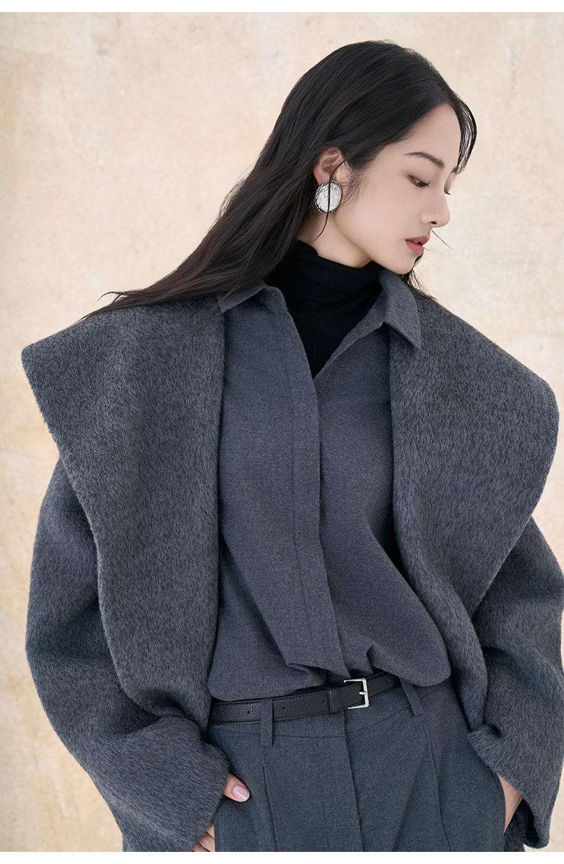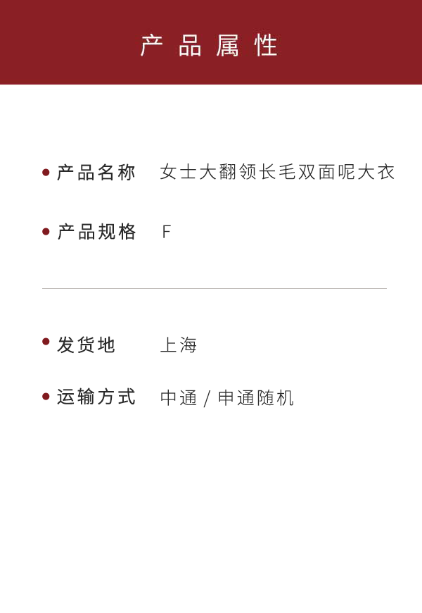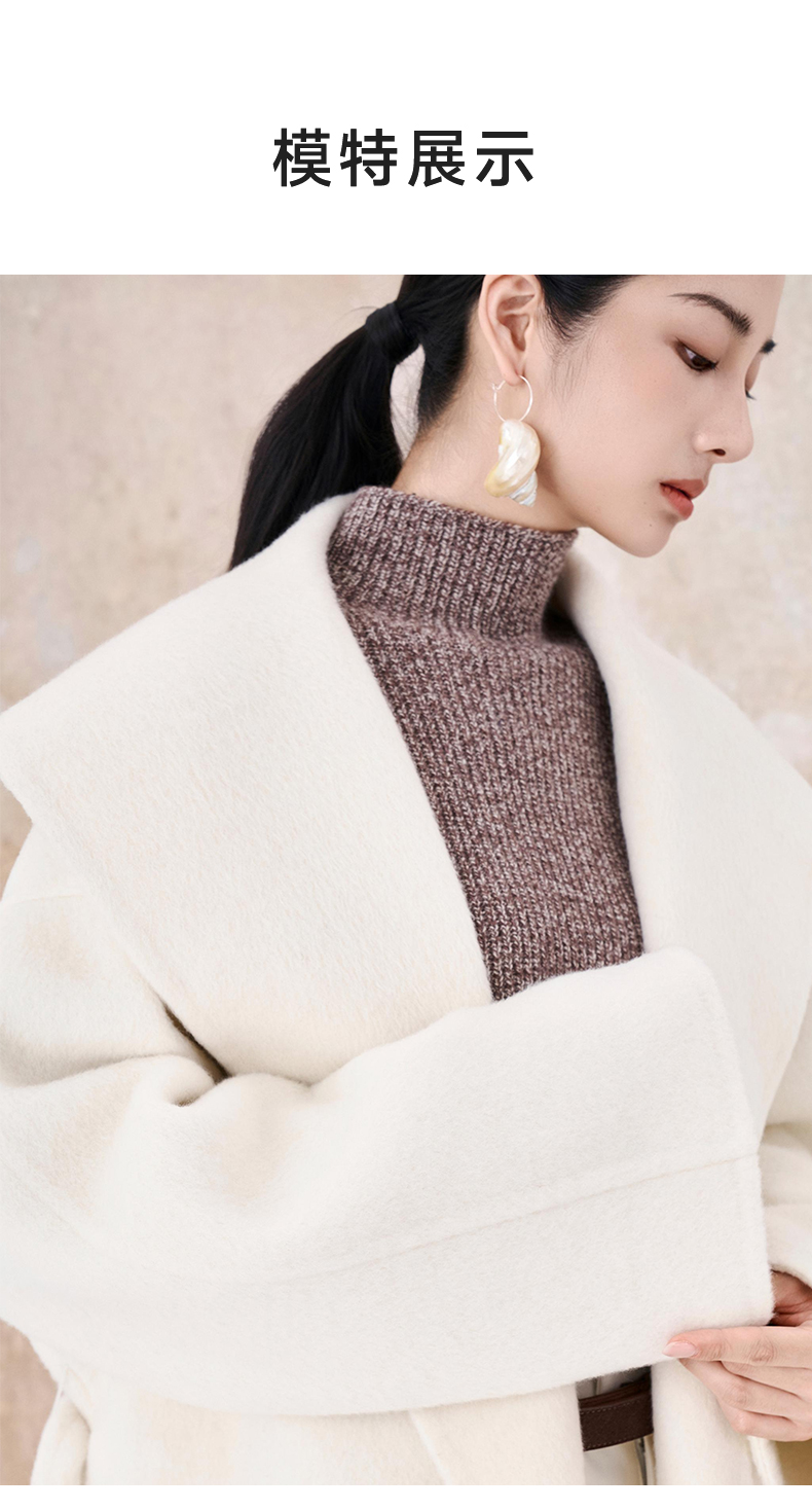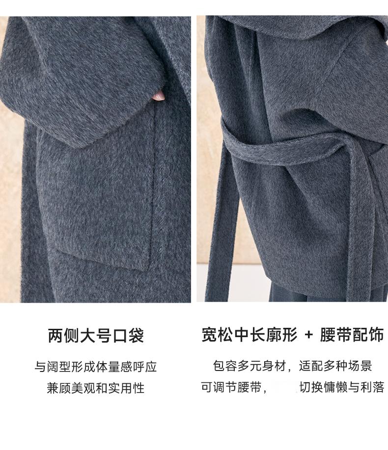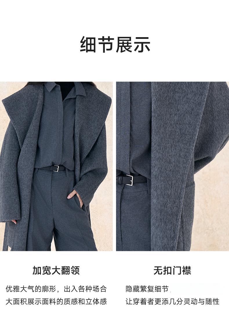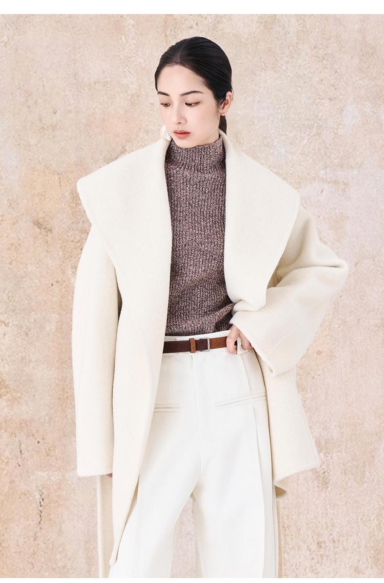 【市野织间】女士大翻领长毛双面呢大衣 绵羊毛与牦牛绒混纺