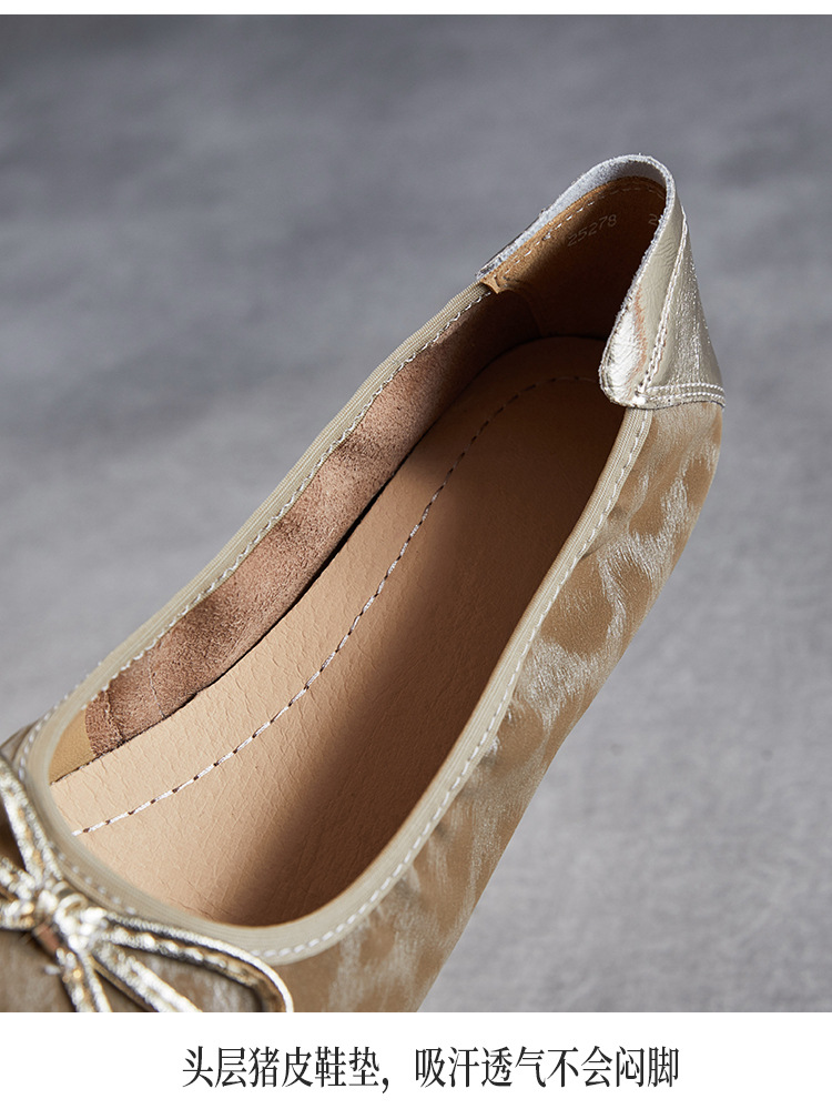 ZM 258339蝴蝶结法式低跟软底芭蕾鞋仙女风