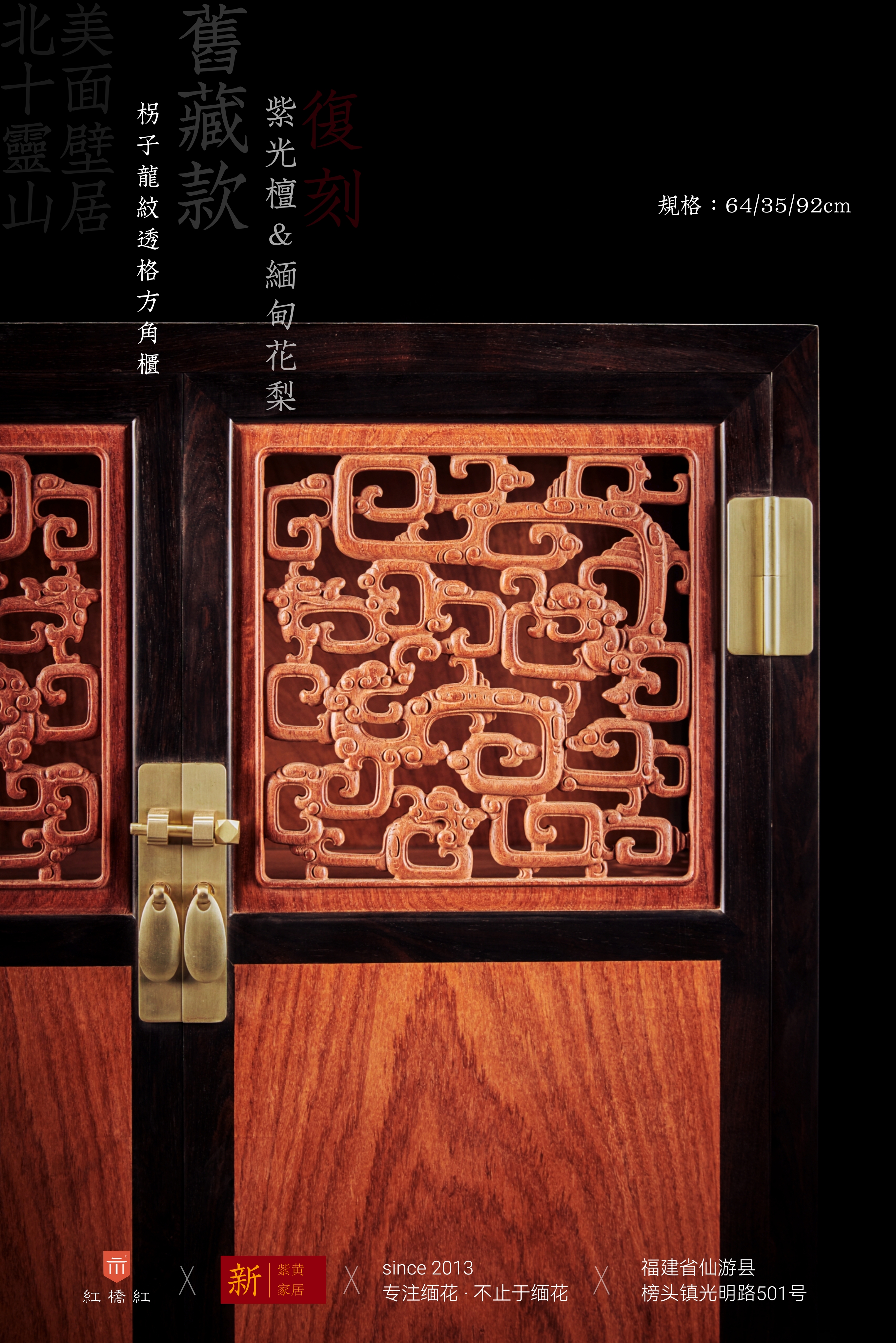 红桥红  家具严选  缅甸花梨(大果紫檀)【紫光檀 92 拐子纹 透格方角柜】 商品图2