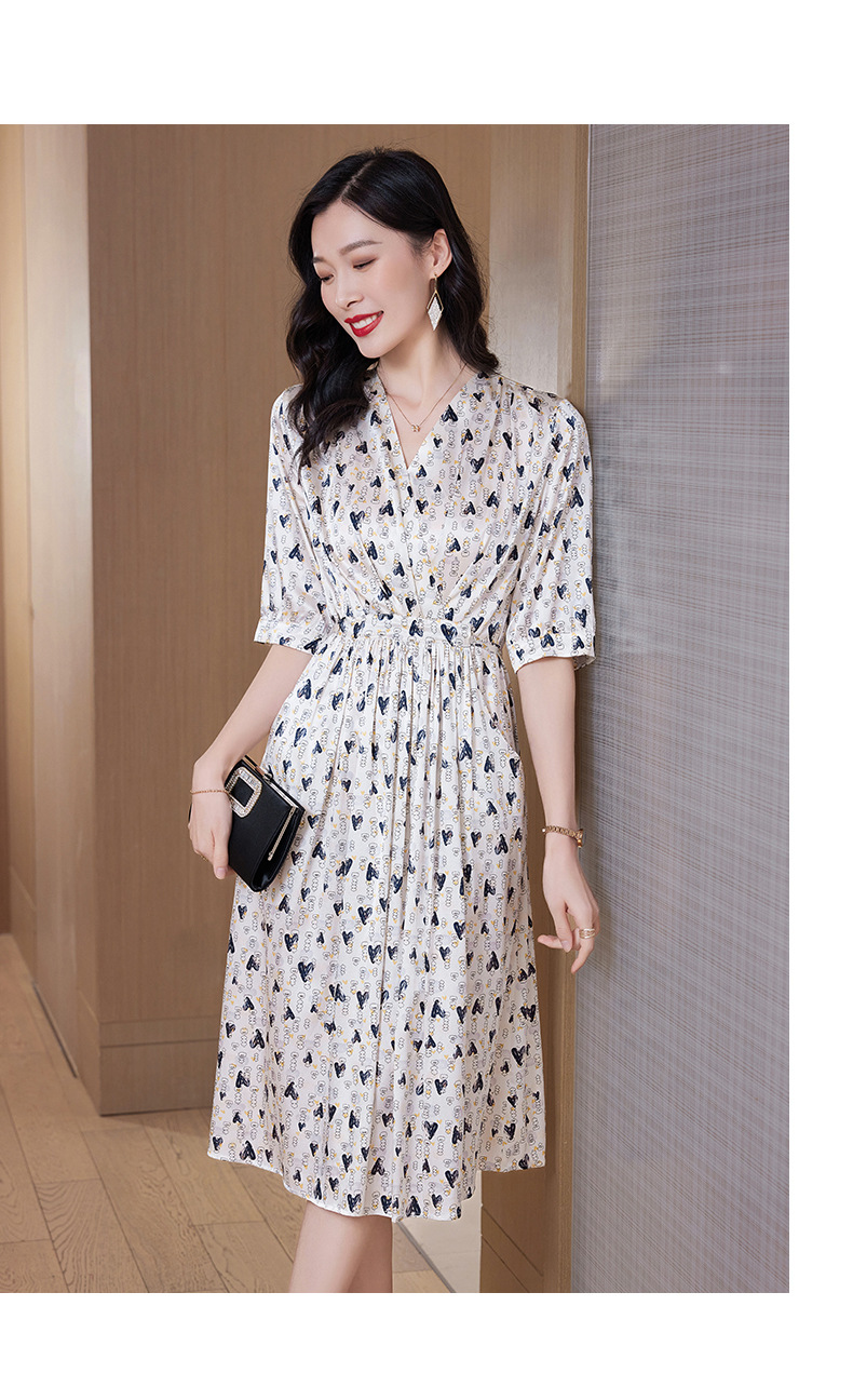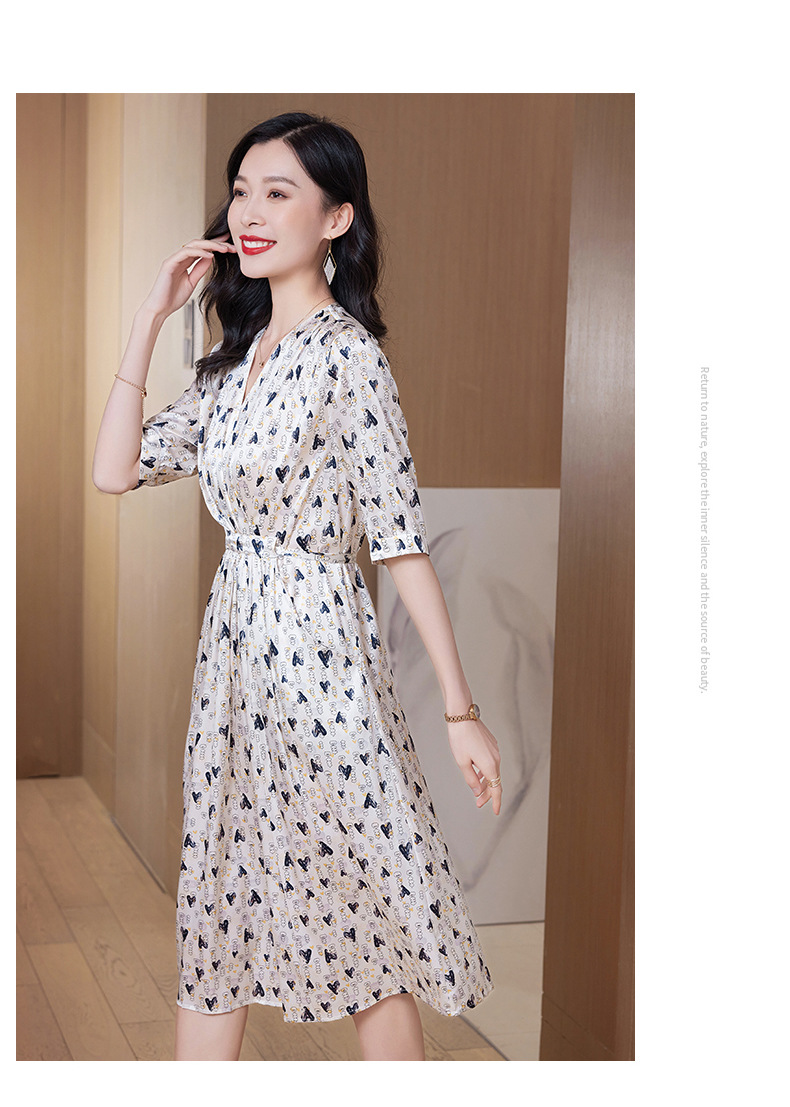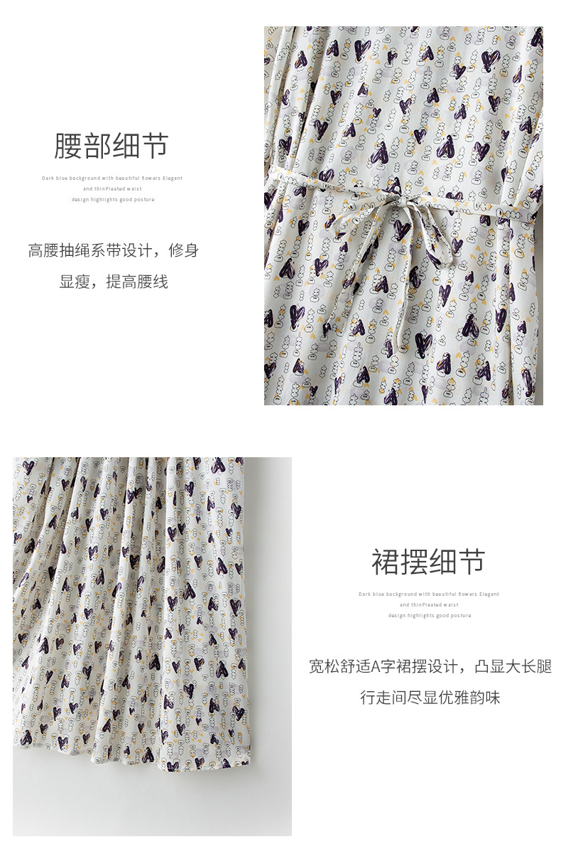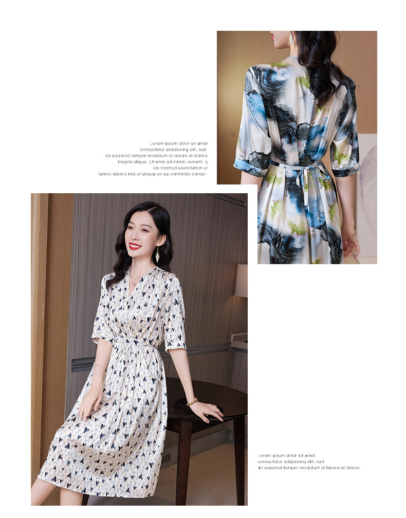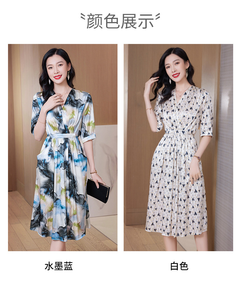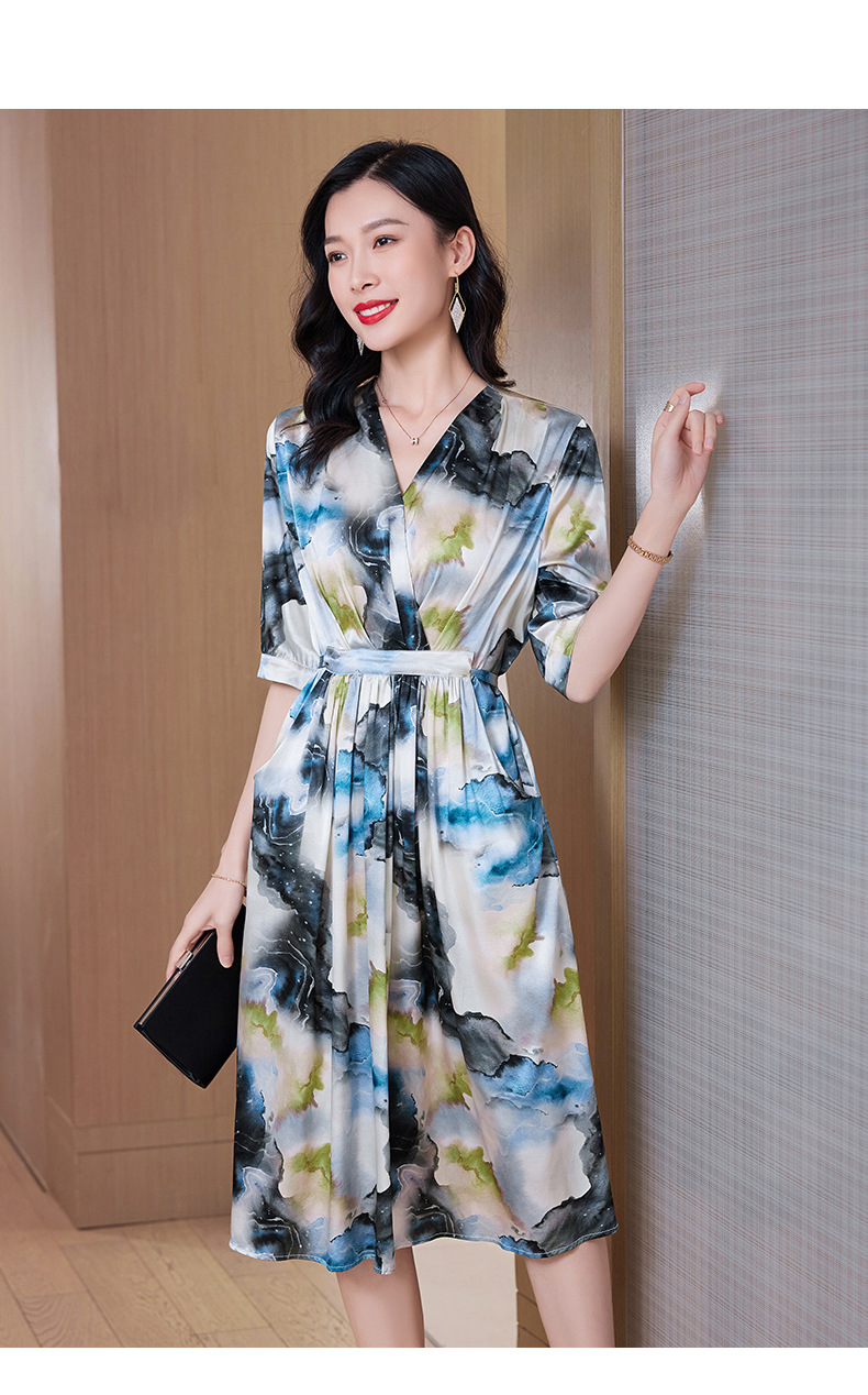 ASE-23001 复古国墨画元素桑蚕丝连衣裙夏季新款心形收腰显瘦裙子