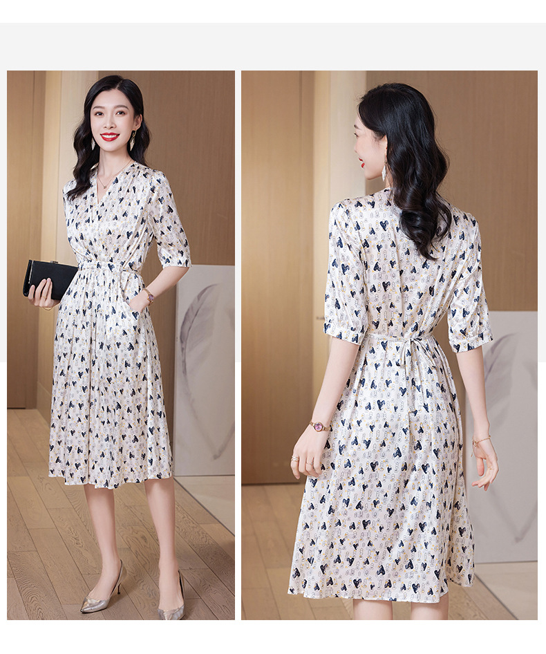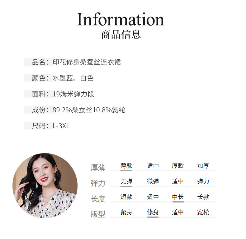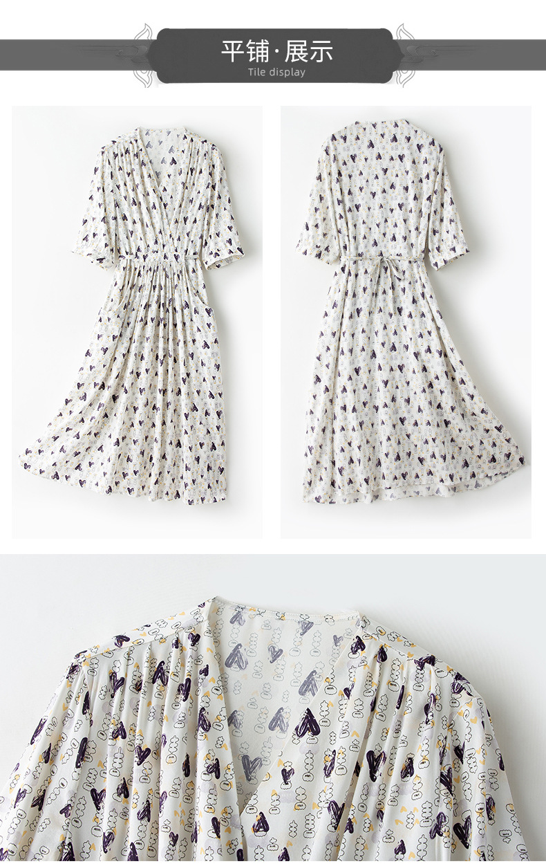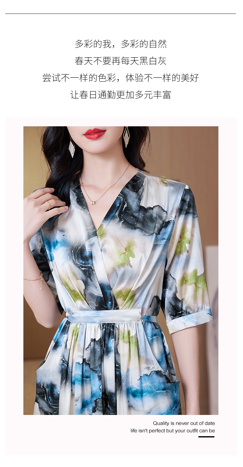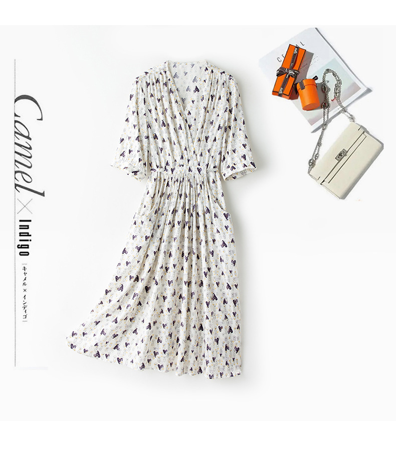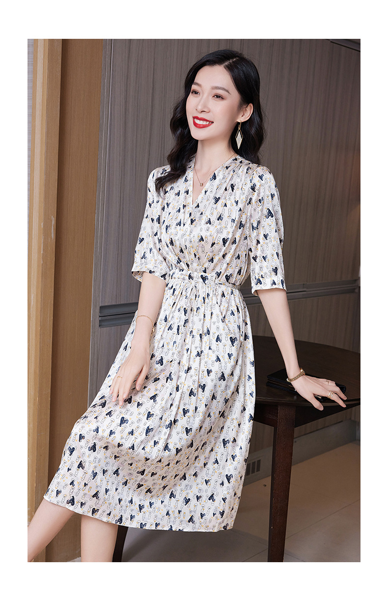 ASE-23001 复古国墨画元素桑蚕丝连衣裙夏季新款心形收腰显瘦裙子