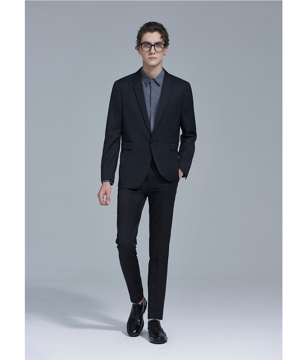 HIM漢崇 西服男结婚礼服黑春夏商务休闲正式上班西装 青年帅气