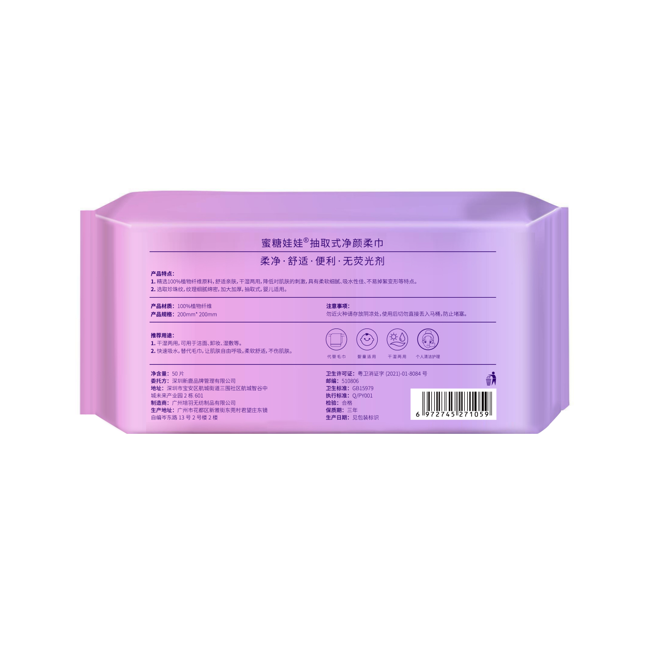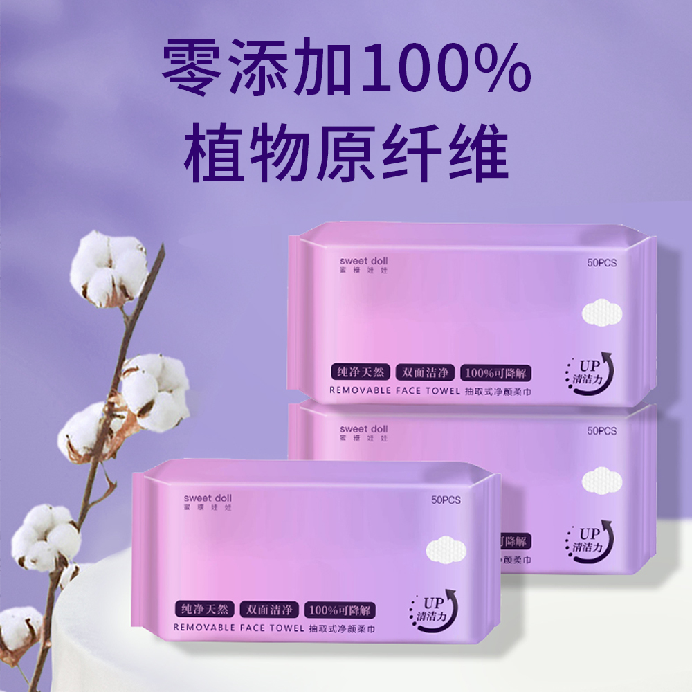 【2包特惠】中国蜜糖娃娃sweetdoll抽取式净颜柔巾20*20cm/50片*2