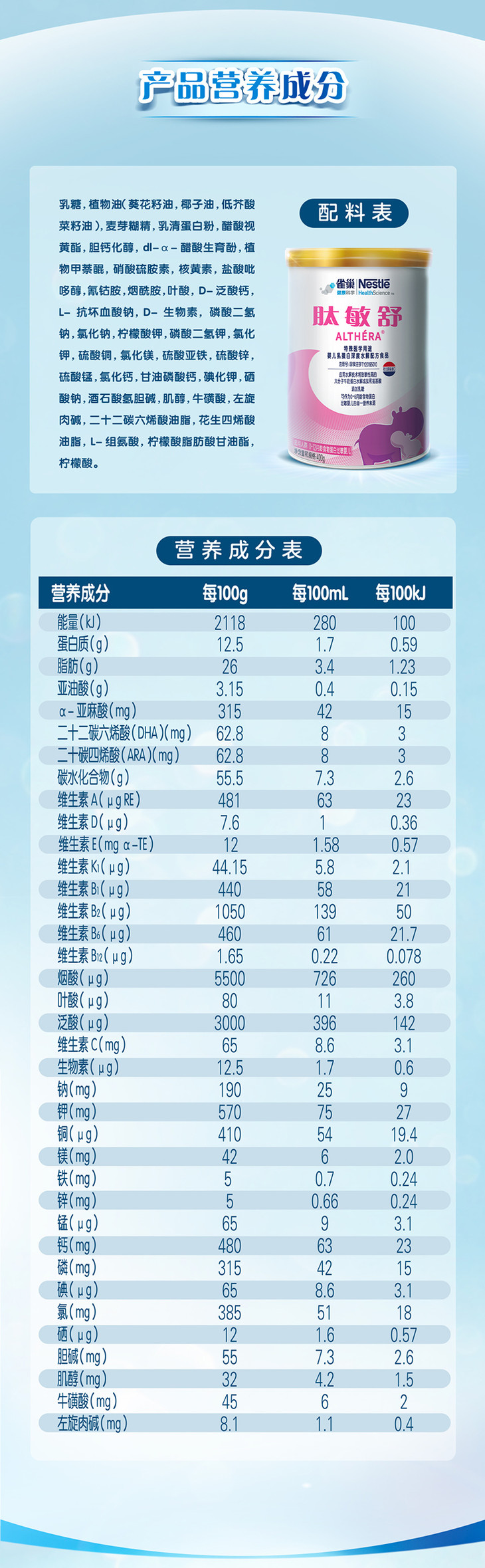 雀巢肽敏舒深度水解奶粉 400g