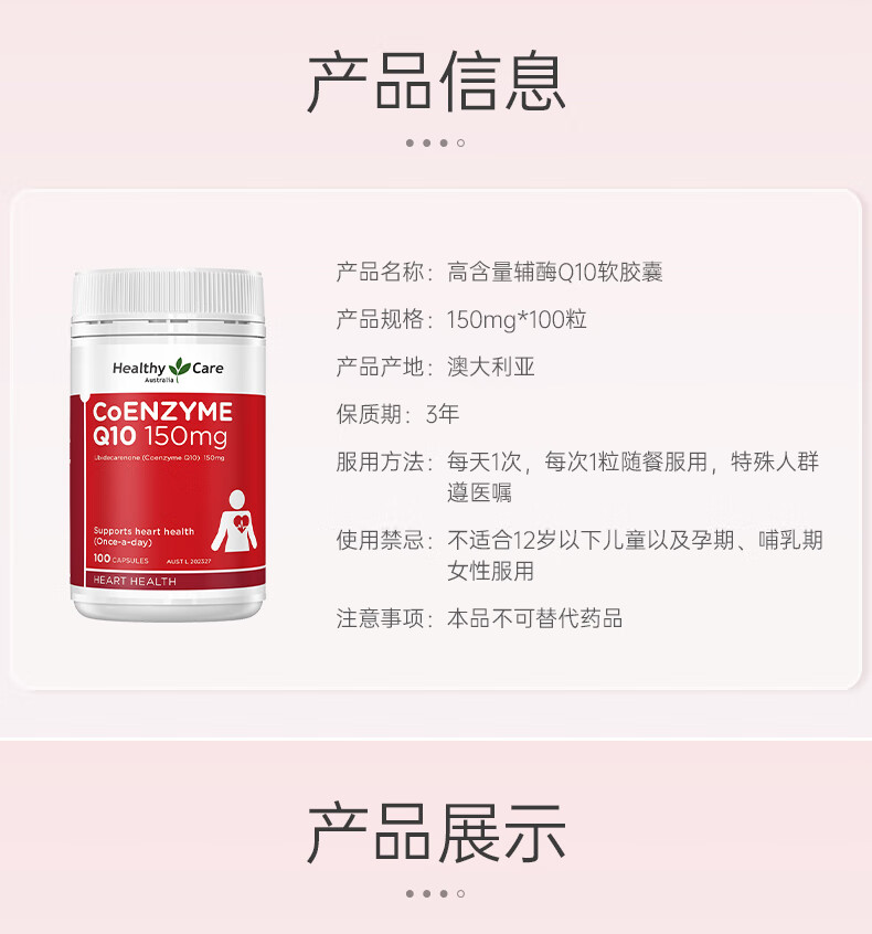 【跨境】澳洲Healthy Care 澳世康 Q10辅酶 150mg 100粒 中老年人(28年4月)