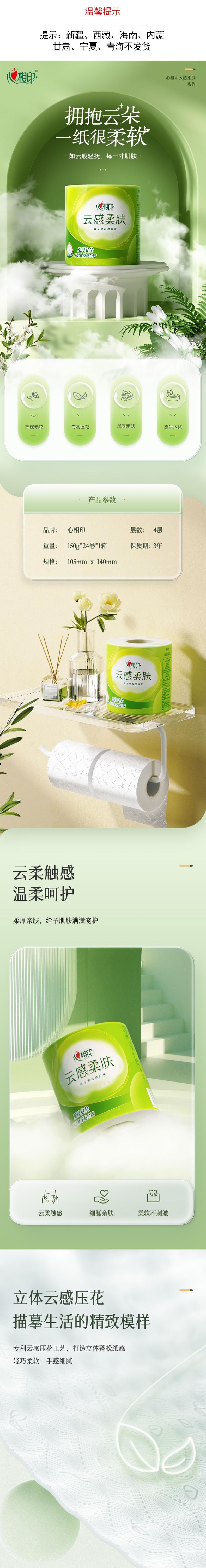 心相印 云感四层卷筒卫生纸150克24粒装 BT5410