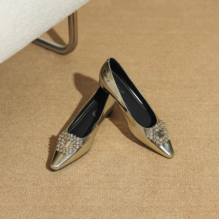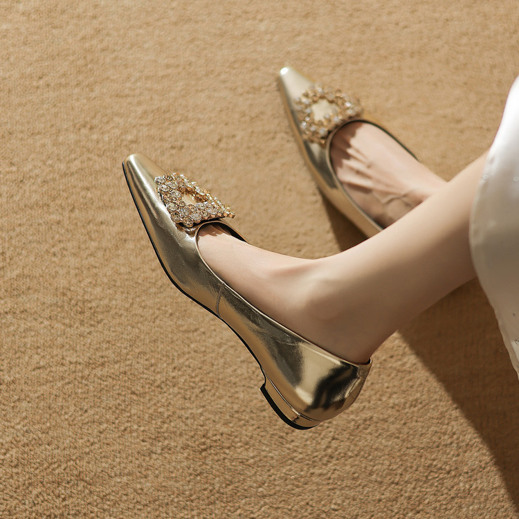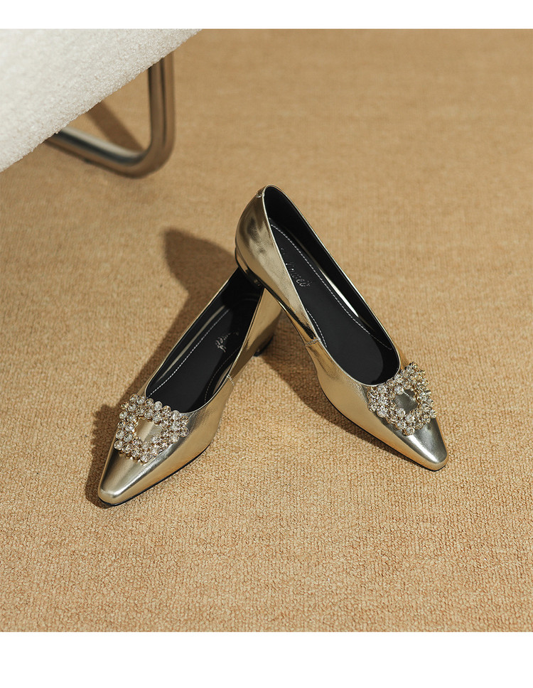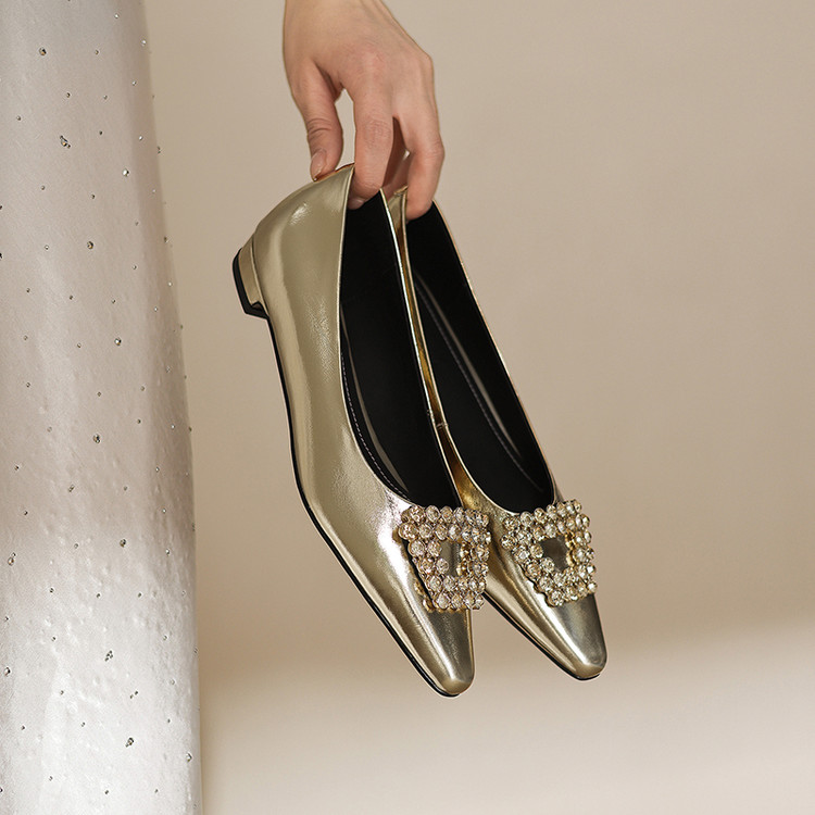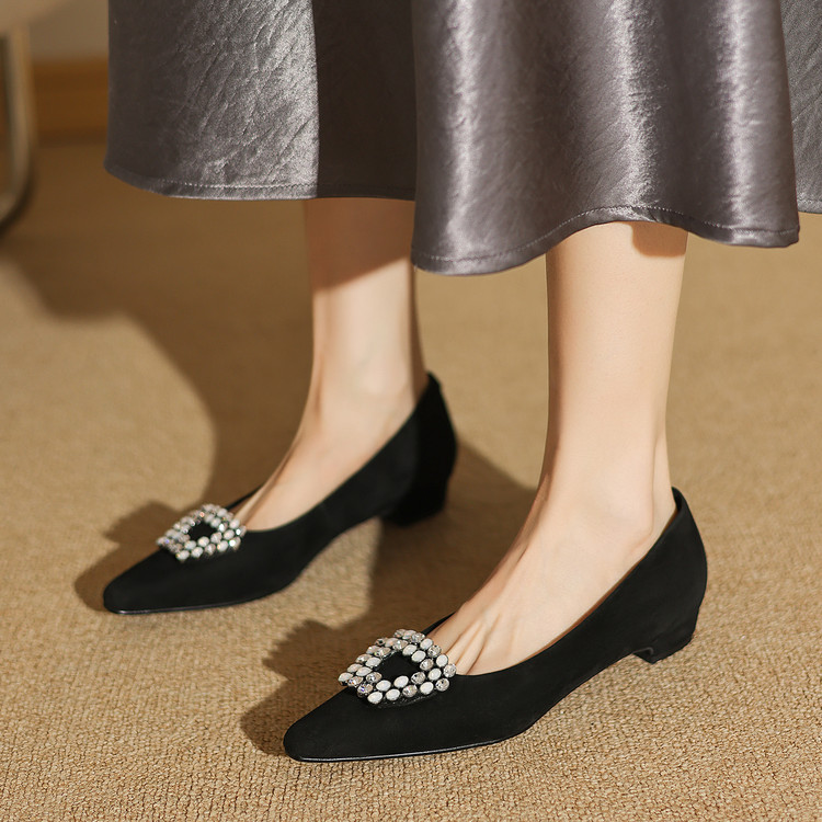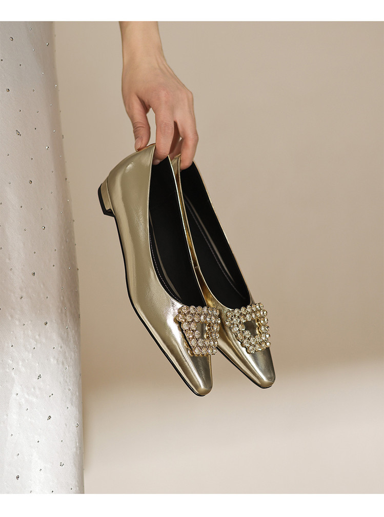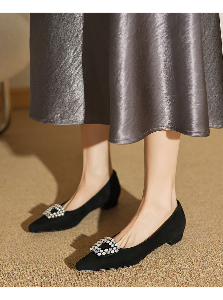 【预售5天】法式方头水钻方扣浅口低粗跟单鞋女士秋季新款小皮鞋OL工作鞋ZF&25171