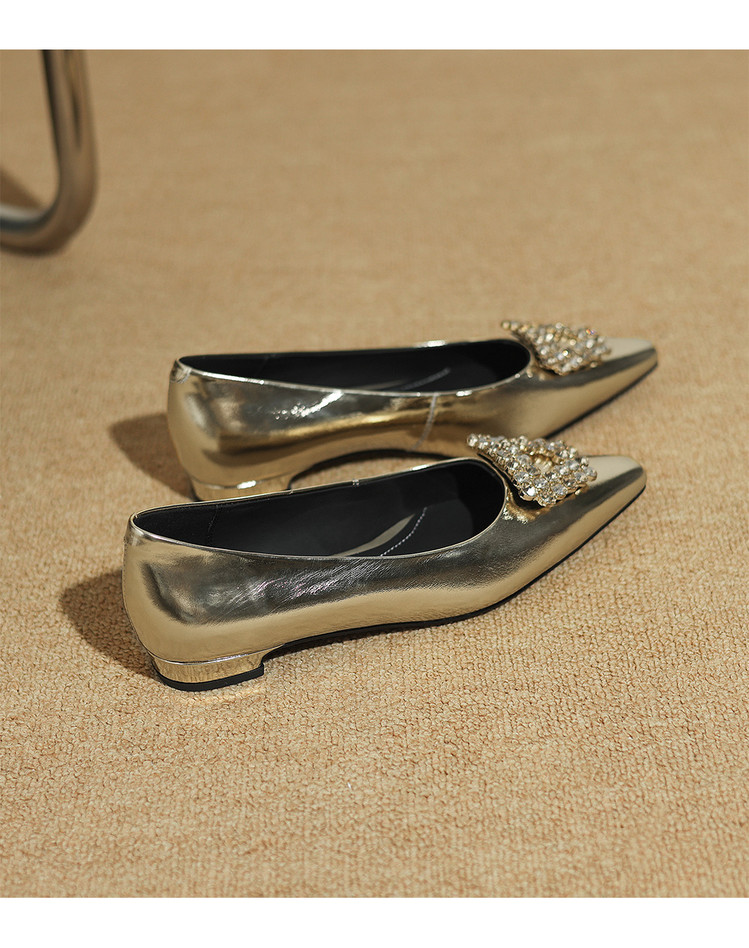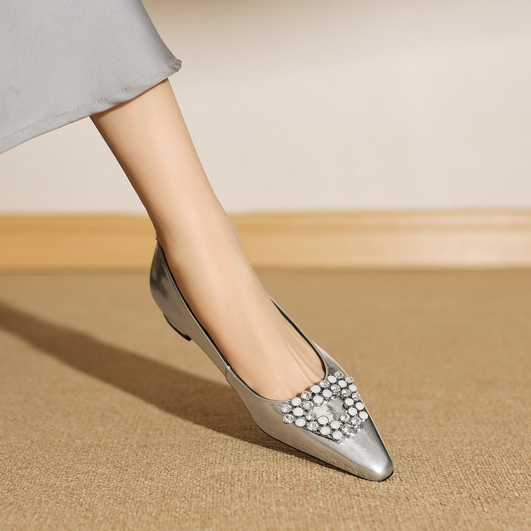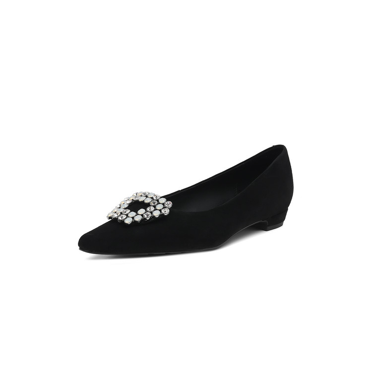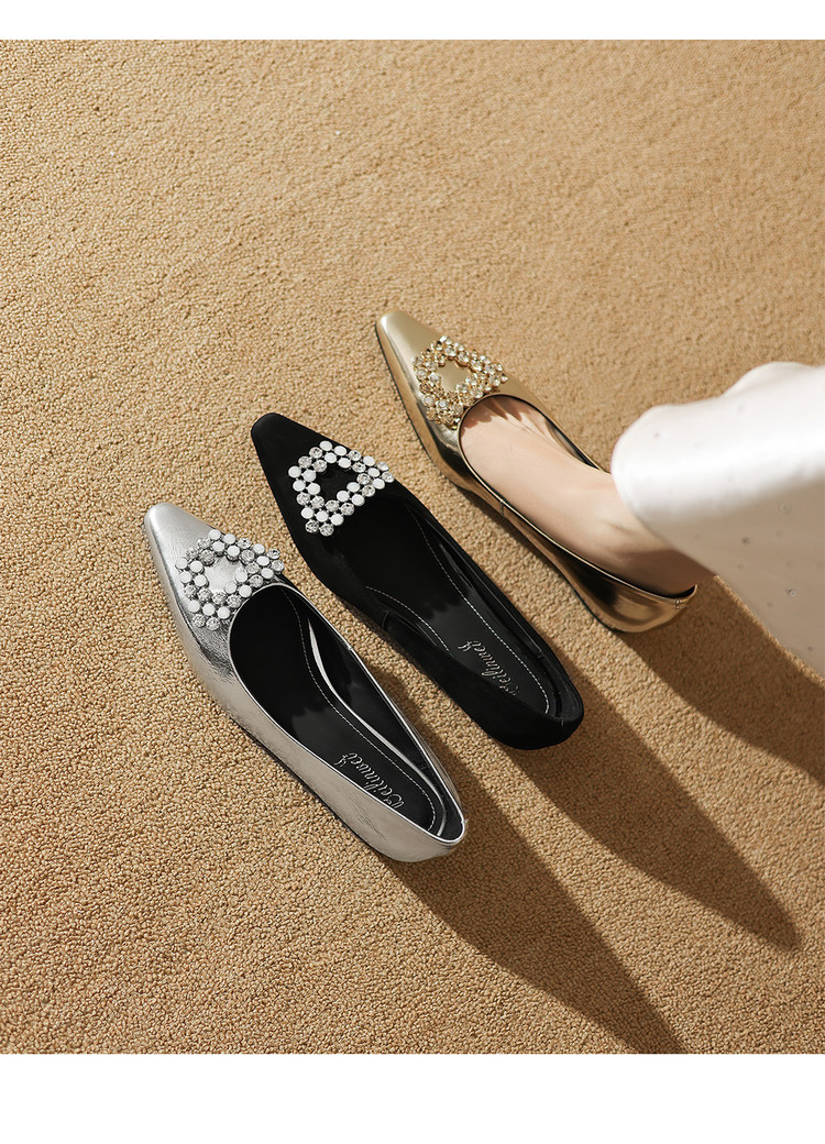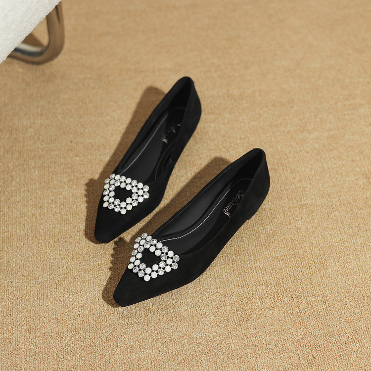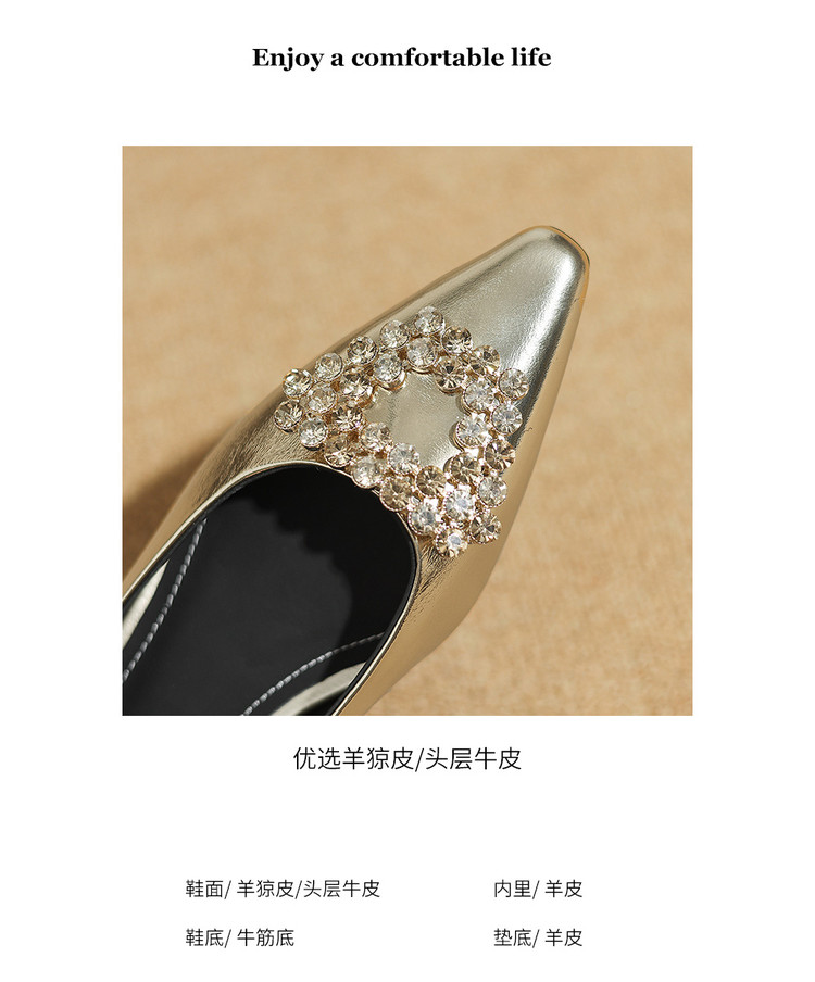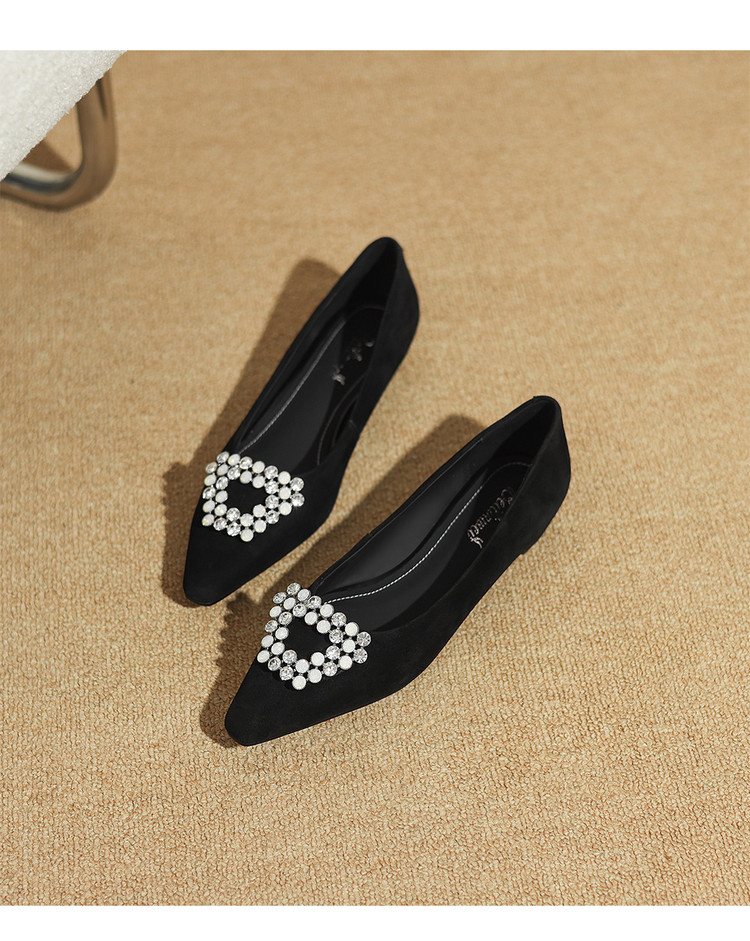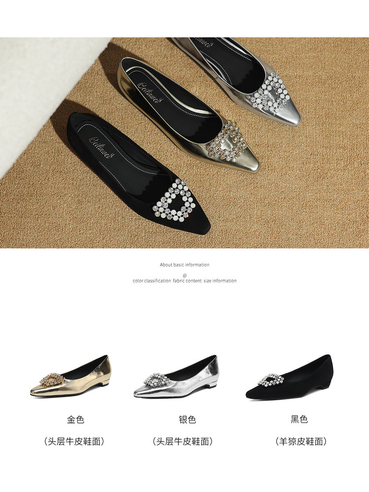 【预售5天】法式方头水钻方扣浅口低粗跟单鞋女士秋季新款小皮鞋OL工作鞋ZF&25171