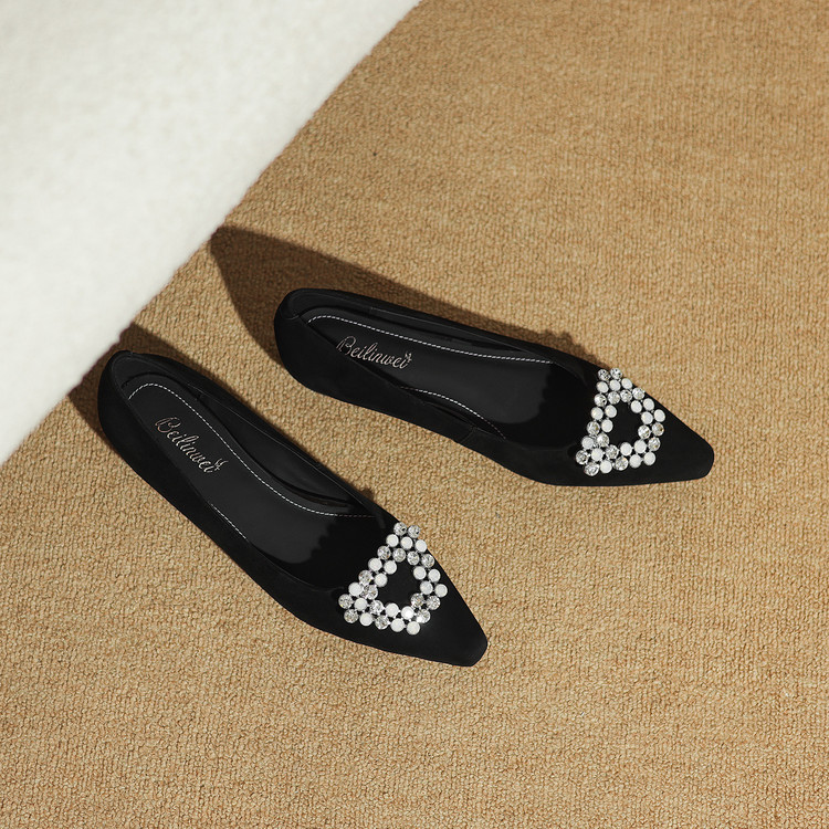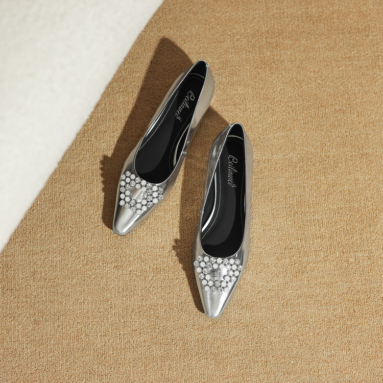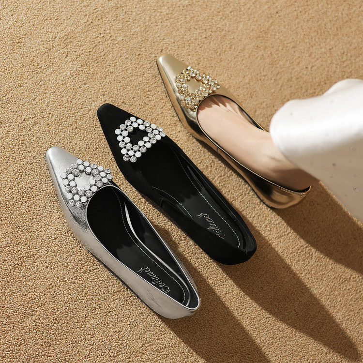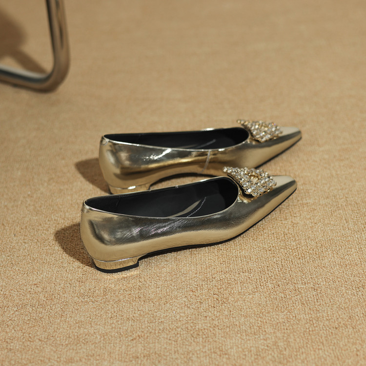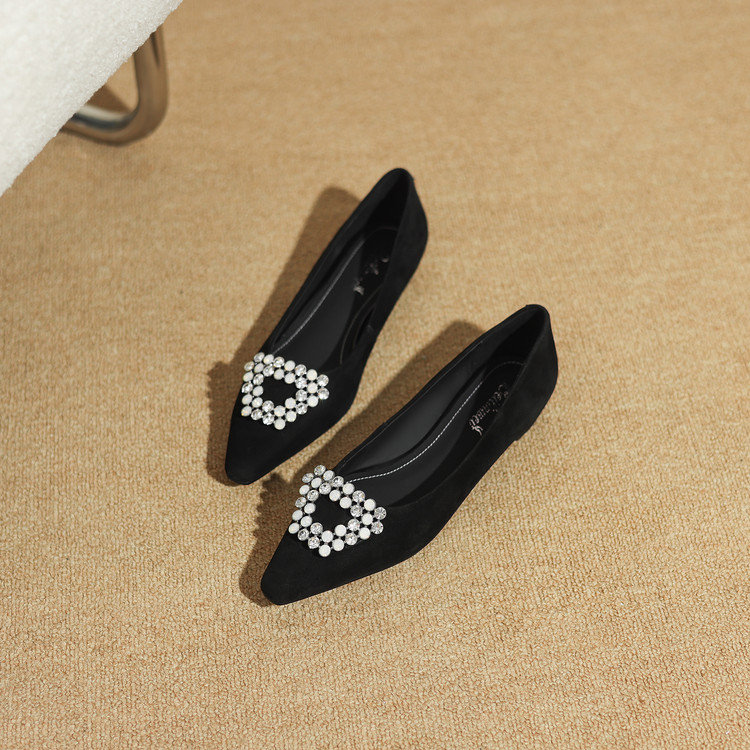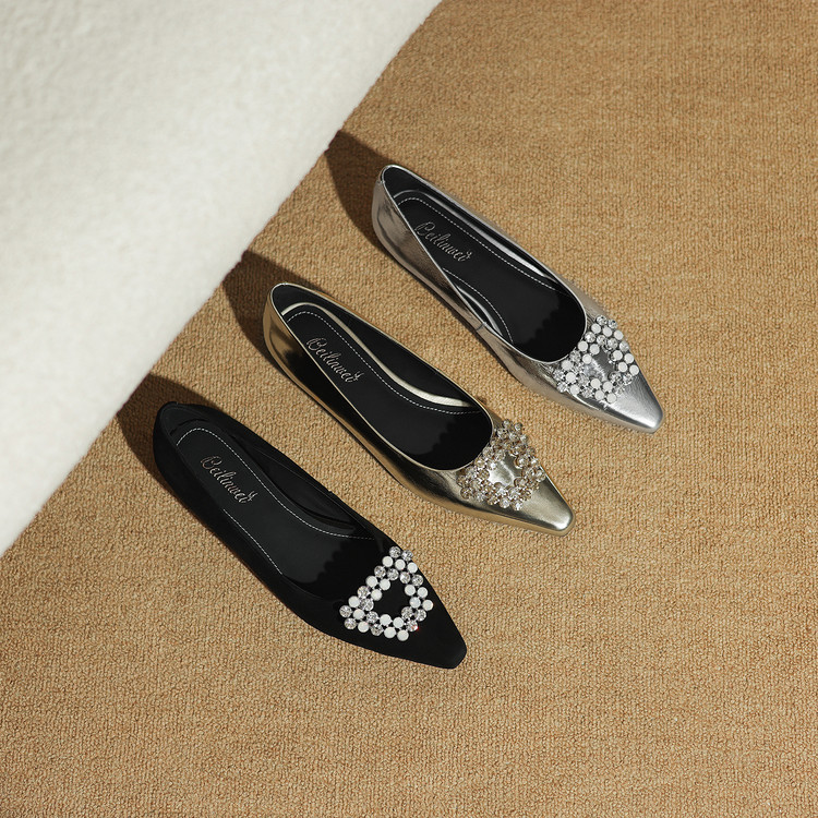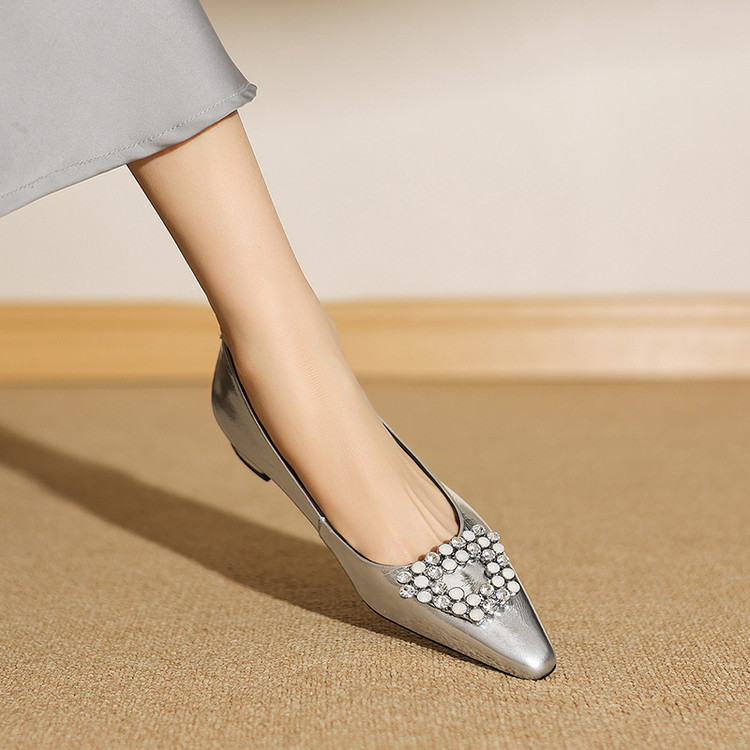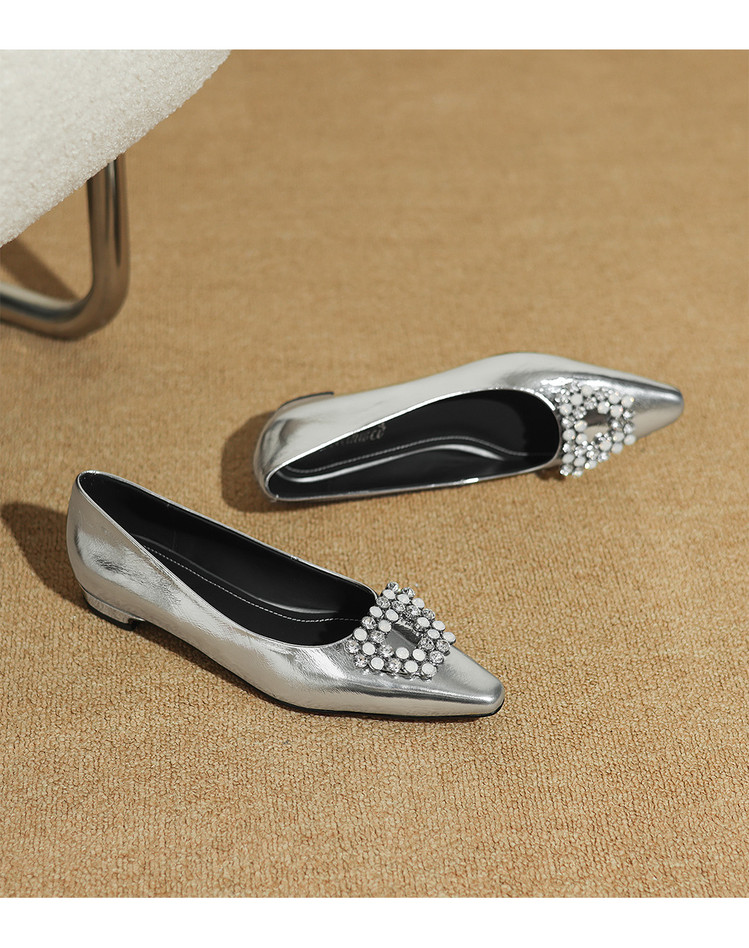 【预售5天】法式方头水钻方扣浅口低粗跟单鞋女士秋季新款小皮鞋OL工作鞋ZF&25171