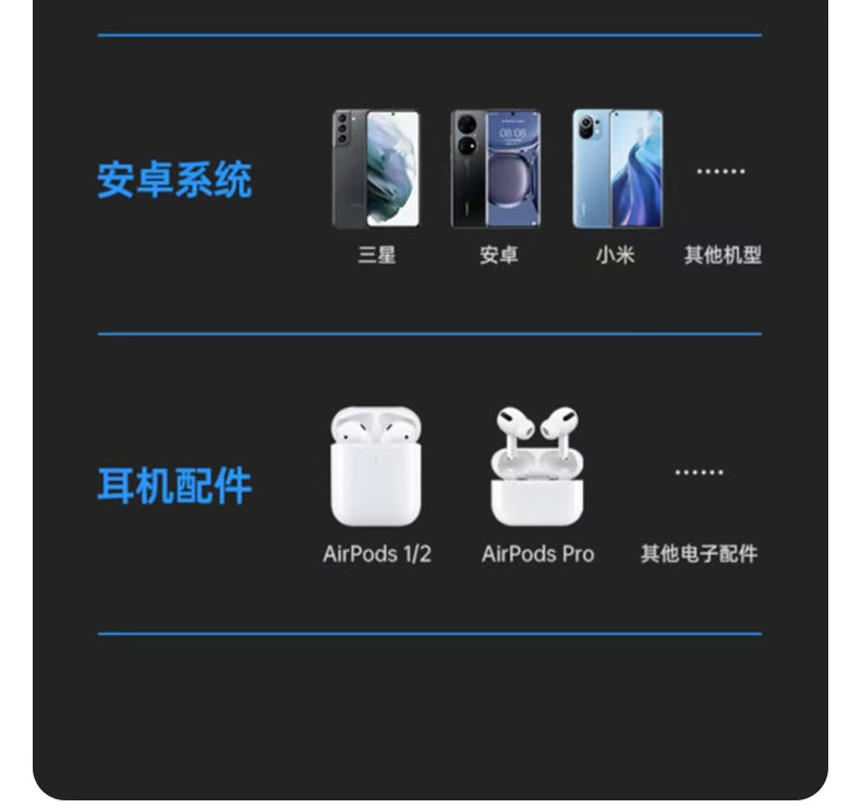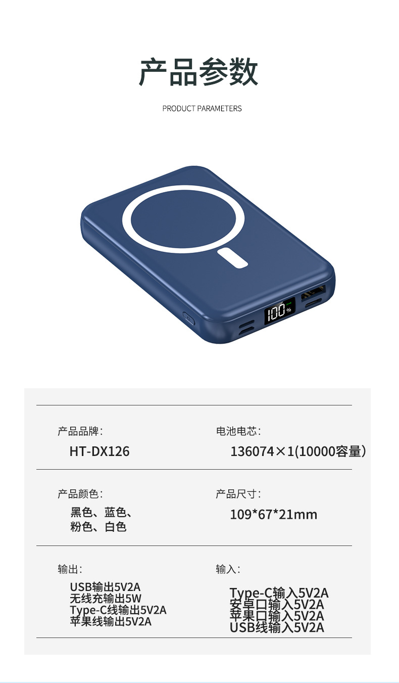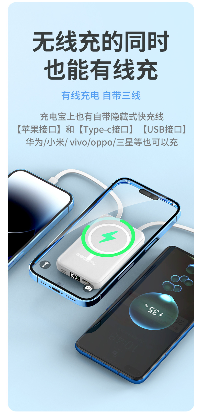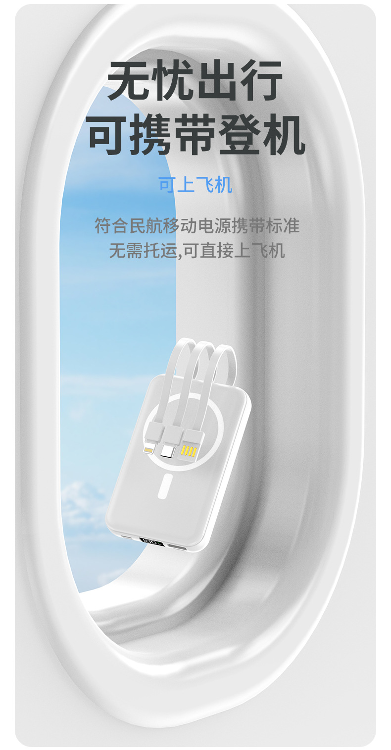 有线无线【磁吸充电宝】10000W 三线快充 苹果 Type-c usb