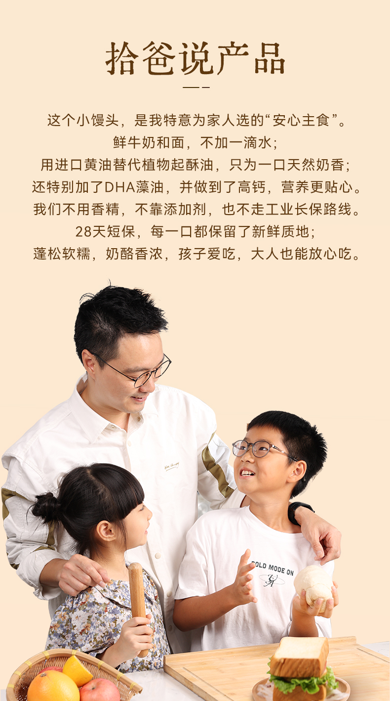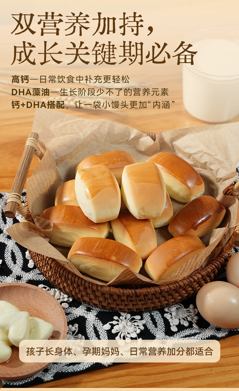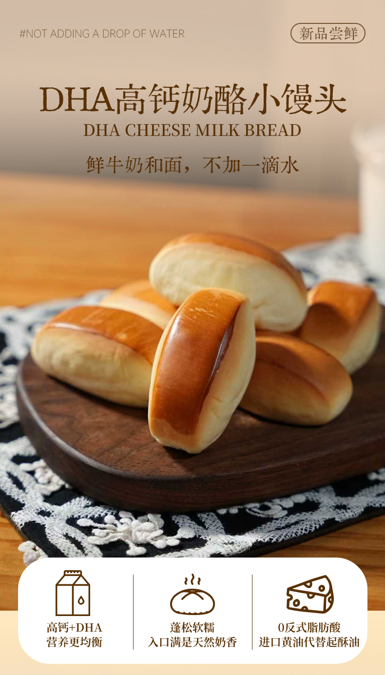 拾爸家 DHA高钙奶酪小馒头 鲜牛奶和面 不加一滴水 高钙+DHA 营养更均衡 蓬松软糯 天然奶香