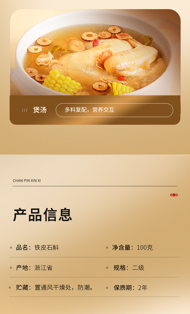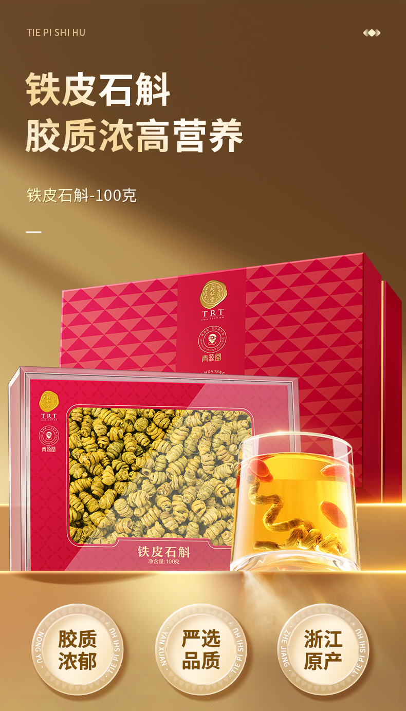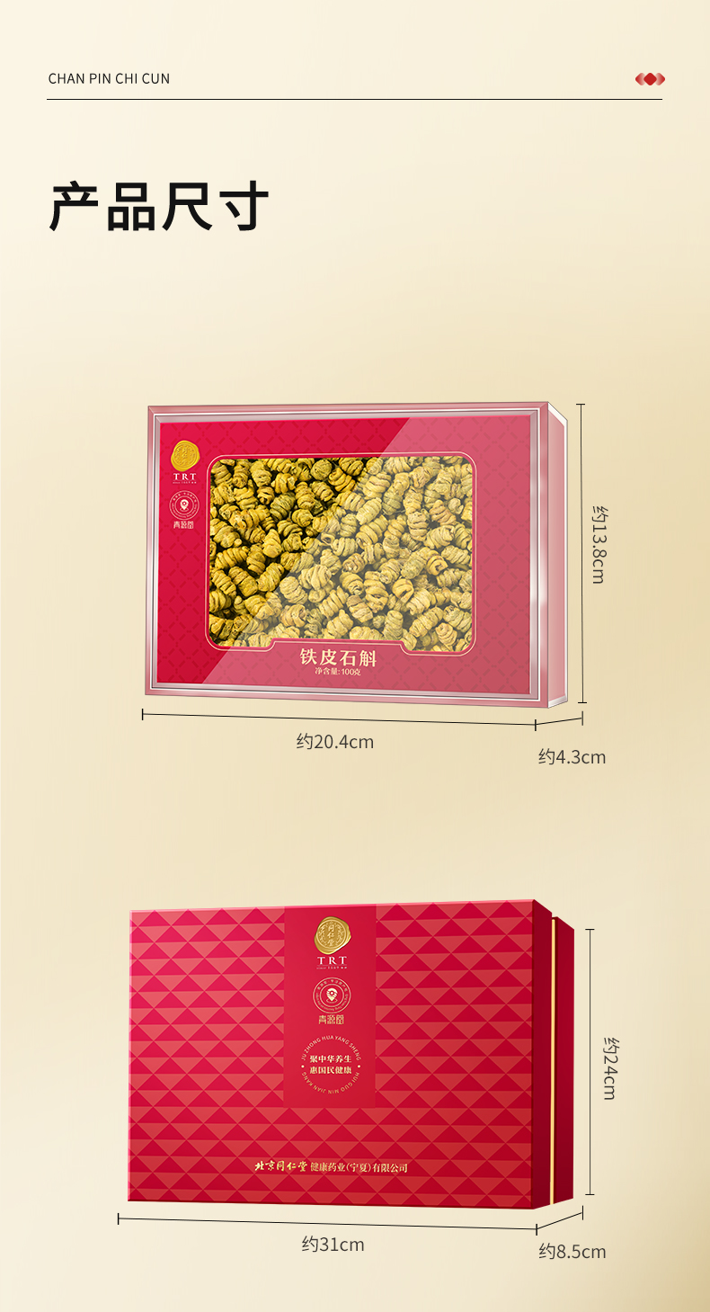 【正宗同仁堂品牌】北京同仁堂 青源堂 铁皮石斛100克摆盘礼盒 浙江乐清 胶质饱满 花前采摘