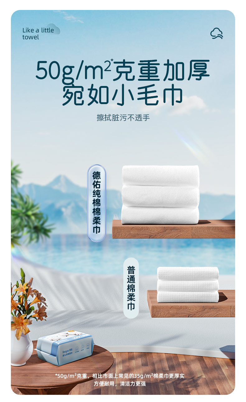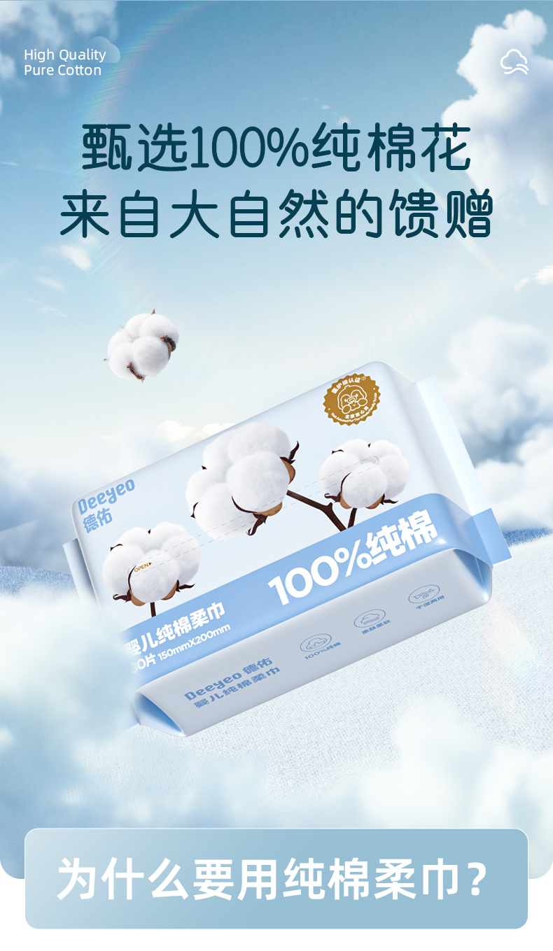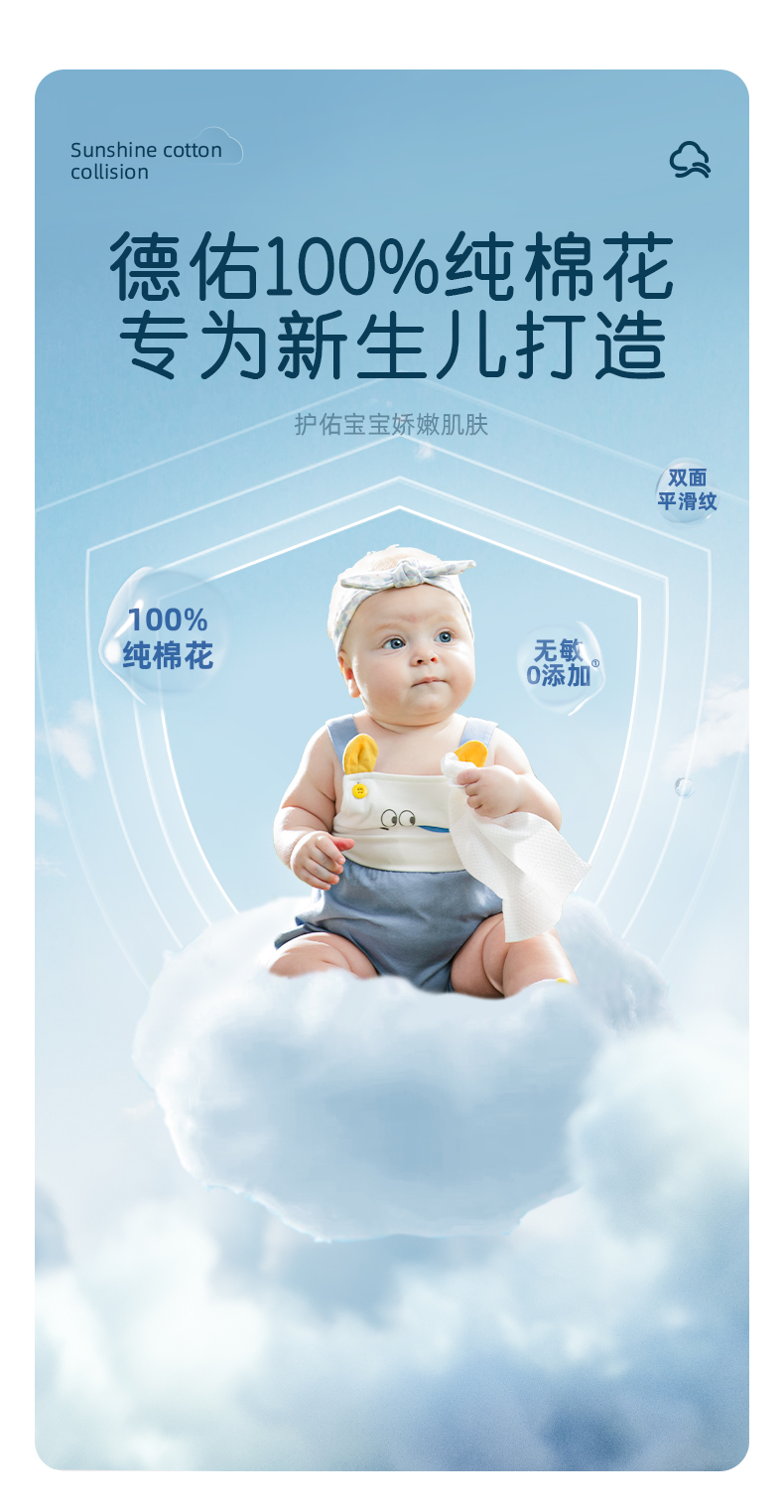 (GX)德佑婴儿纯棉棉柔巾干湿两用80抽*4包
