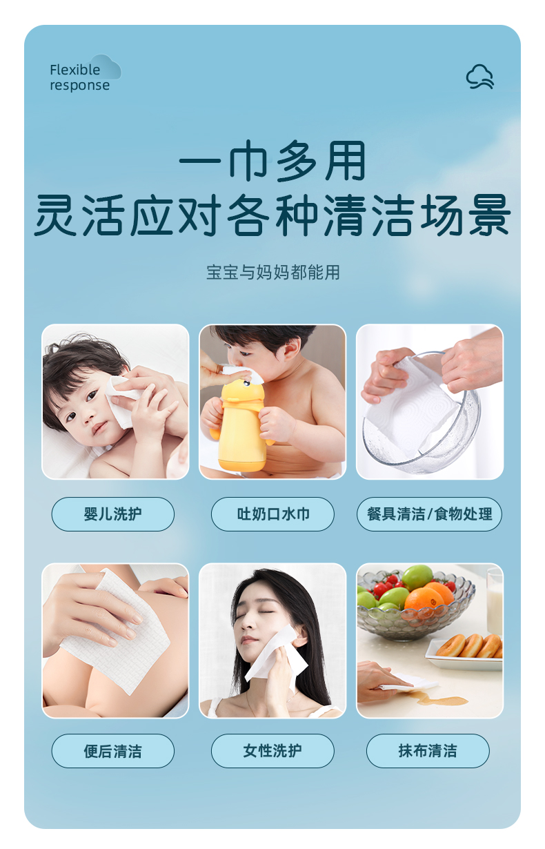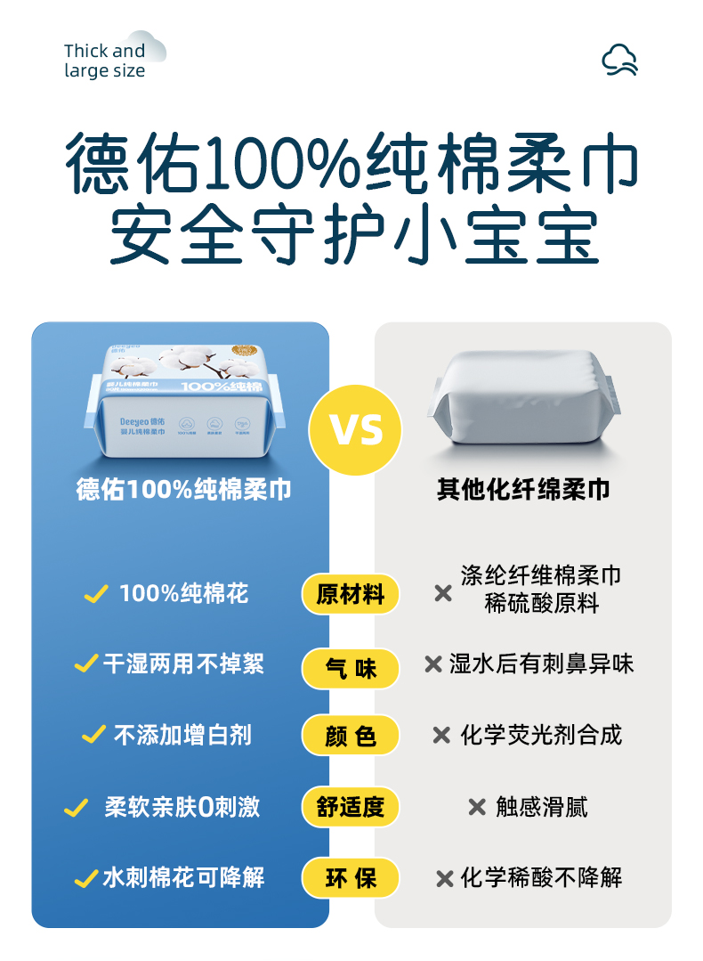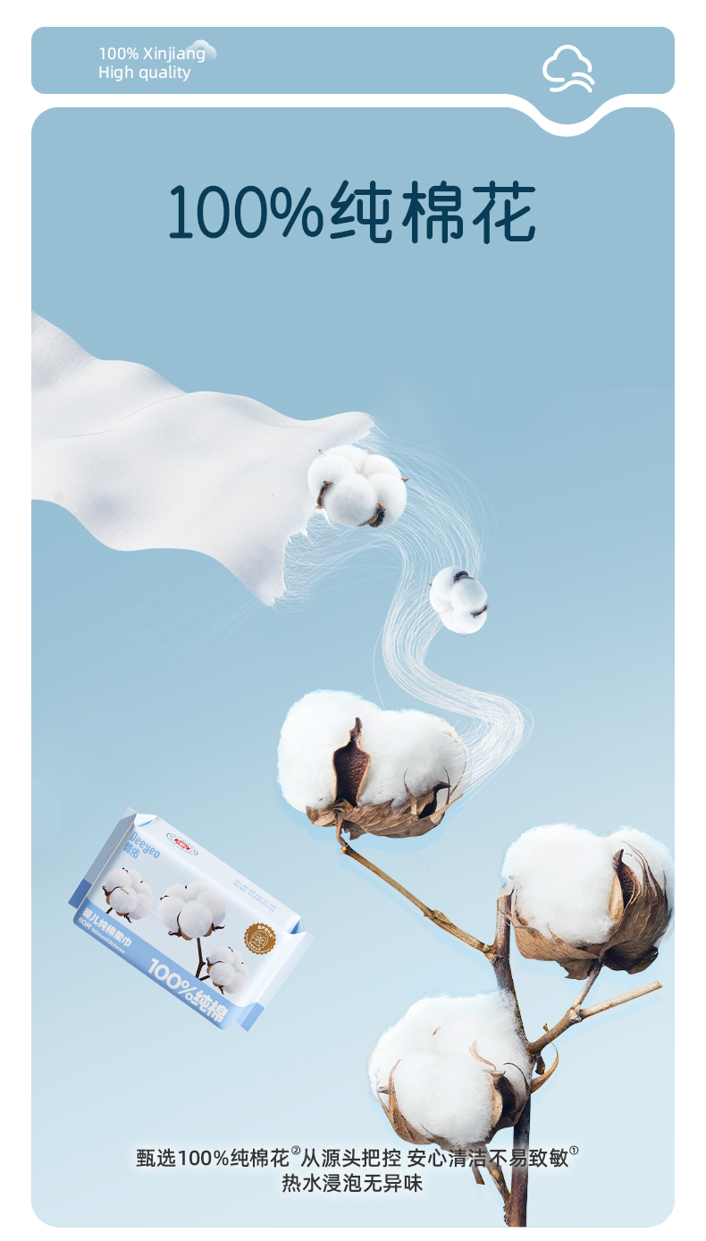 (GX)德佑婴儿纯棉棉柔巾干湿两用80抽*4包