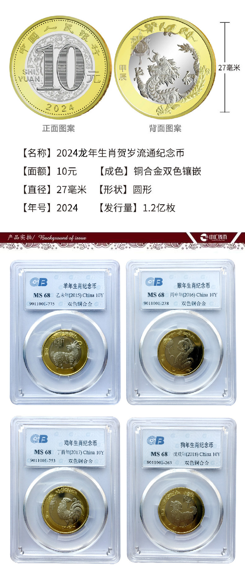 2015-2024年第二轮十二生肖纪念币 10元面值流通贺岁硬币 封装评级版