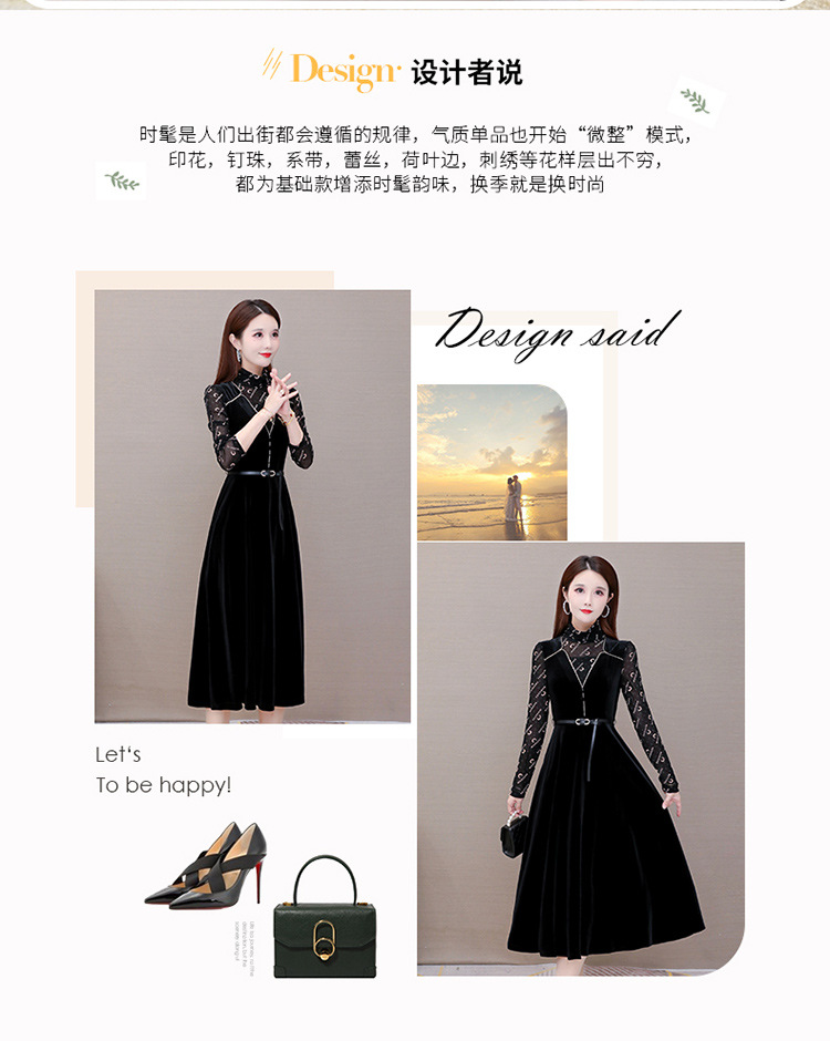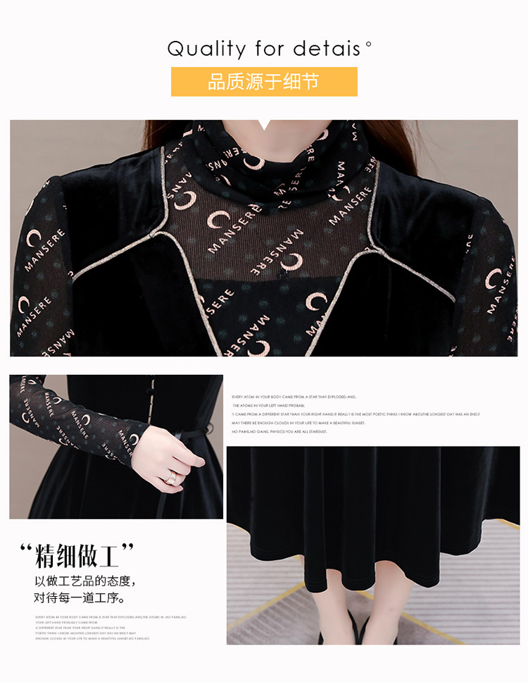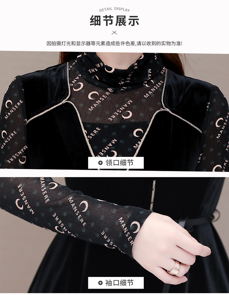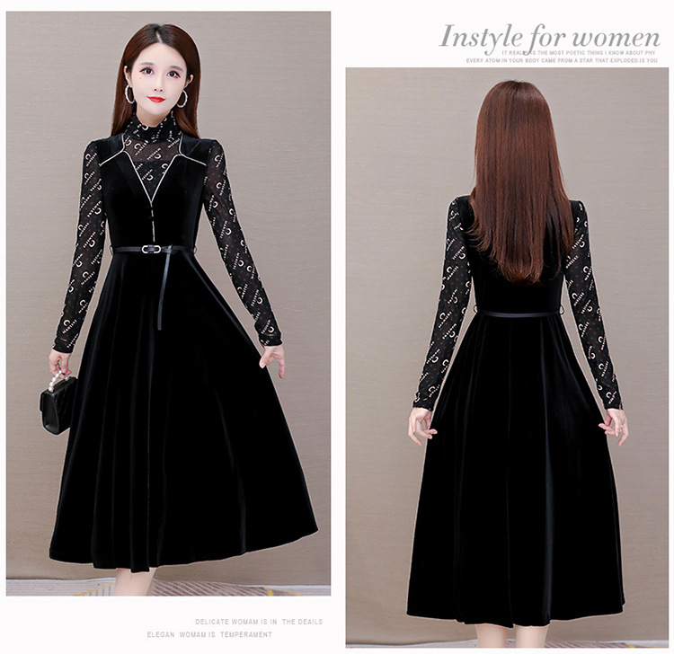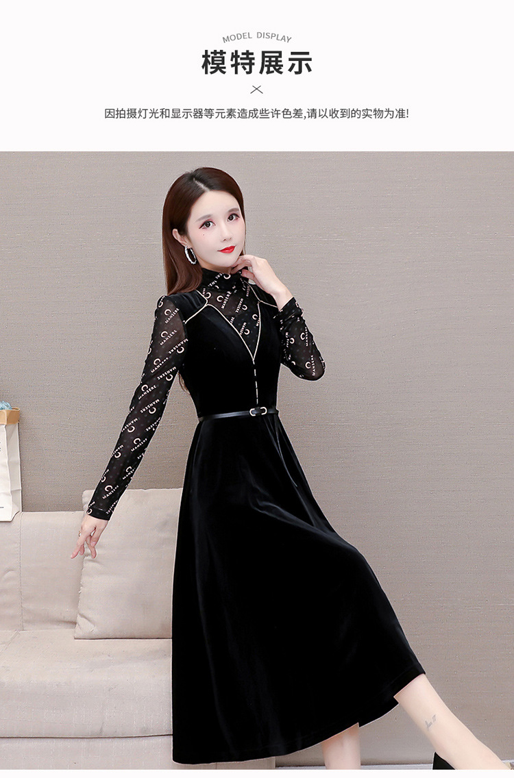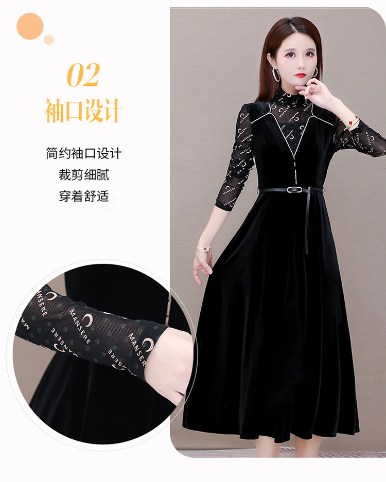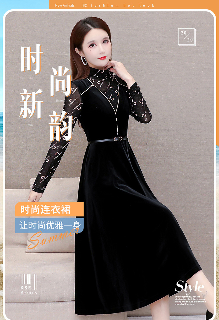 QYM-LFDS-JN20B10-Y新款时尚优雅气质高领长袖中长款金丝绒连衣裙