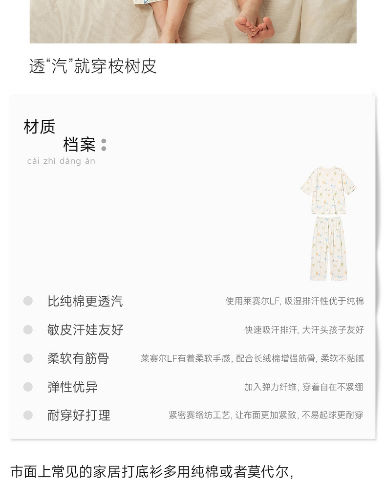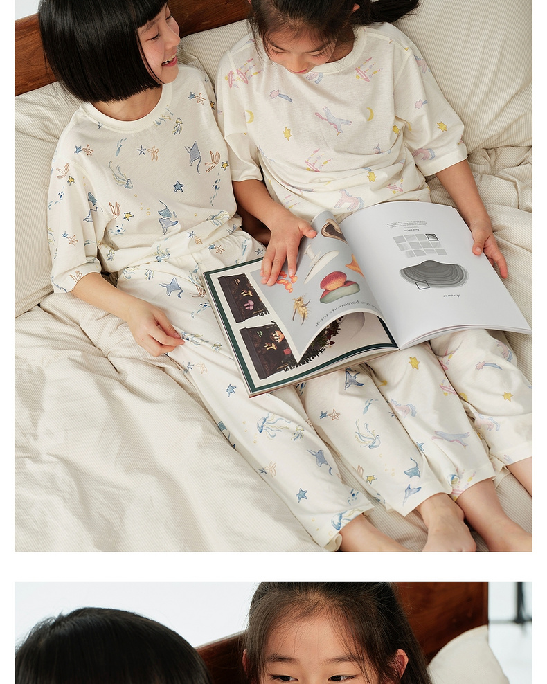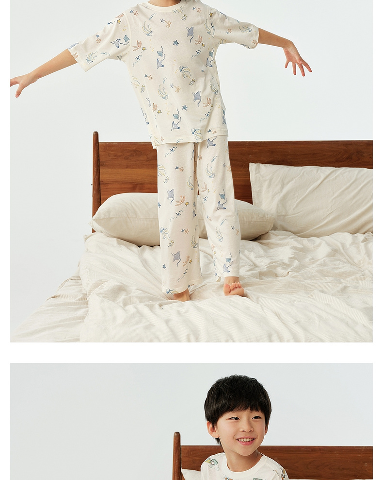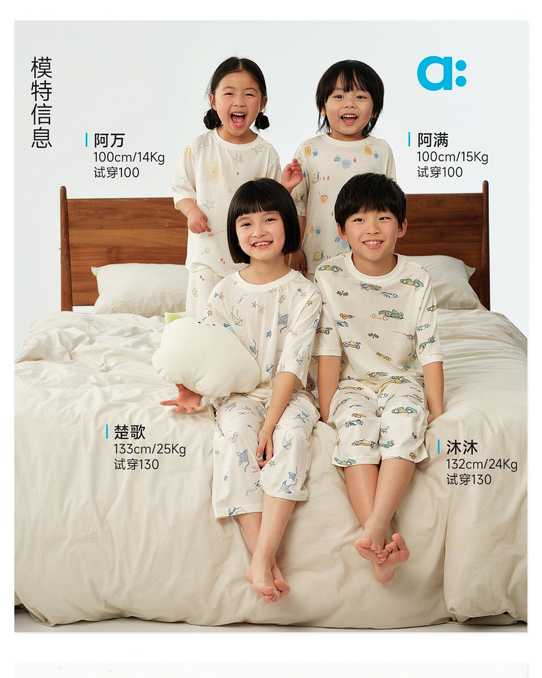 【桉树皮】allblu幼岚【桉树皮】七分袖家居服26春季新款儿童睡衣舒适亲肤