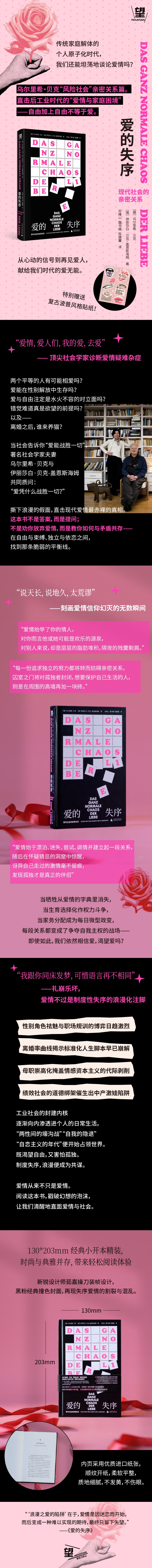 爱的失序:现代社会的亲密关系 (性别意识觉醒扼杀浪漫?离婚率飙升?中产激娃陷阱?从心动的信号到再见爱人,献给我们时代的爱无能。)