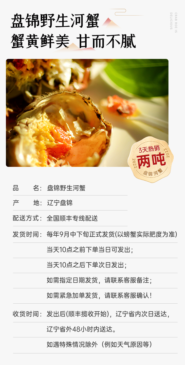 全国包邮 正宗盘锦河蟹 5对10只装 大闸蟹 肉质鲜嫩 蟹黄饱满 百姓价格 -原产地顺丰直发