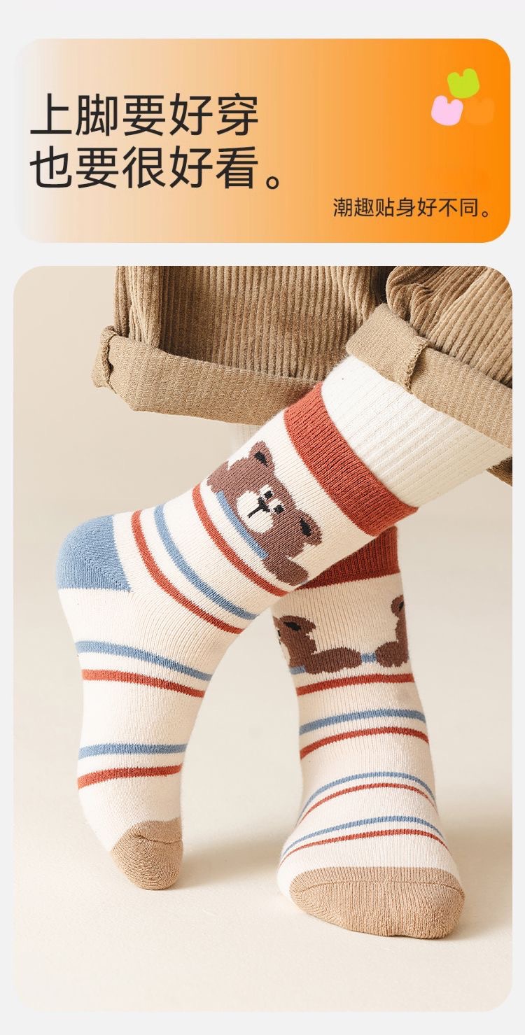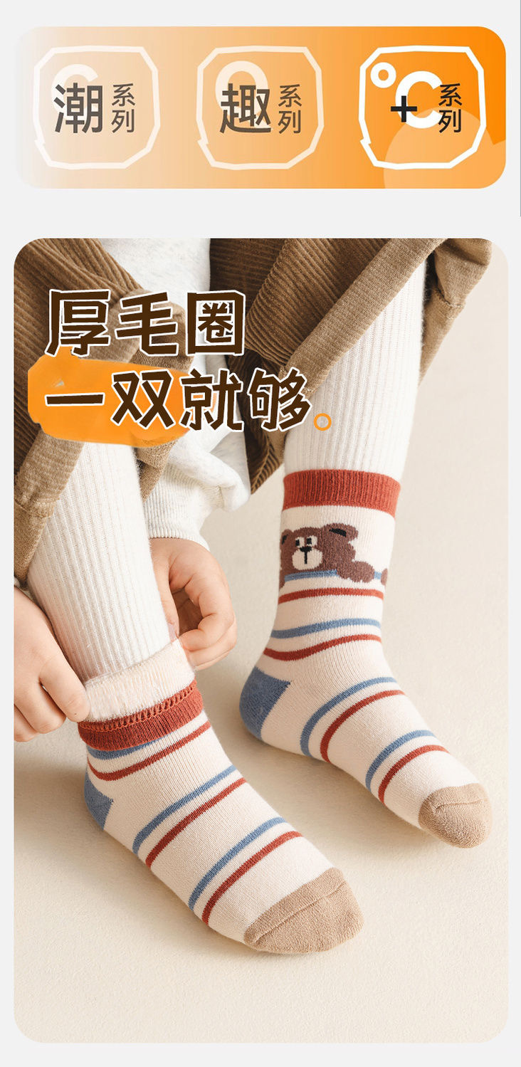 【秒杀!19.9抢5双装 厚毛圈袜子,一款就够!】冬季加绒加厚儿童袜子 中筒宝宝毛圈袜 保暖防寒女孩学生公主女童袜。hb