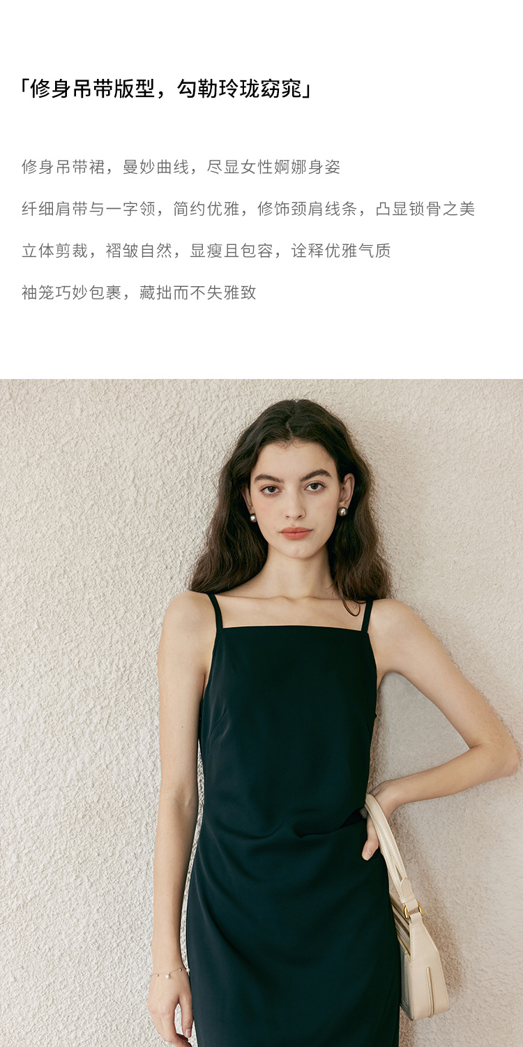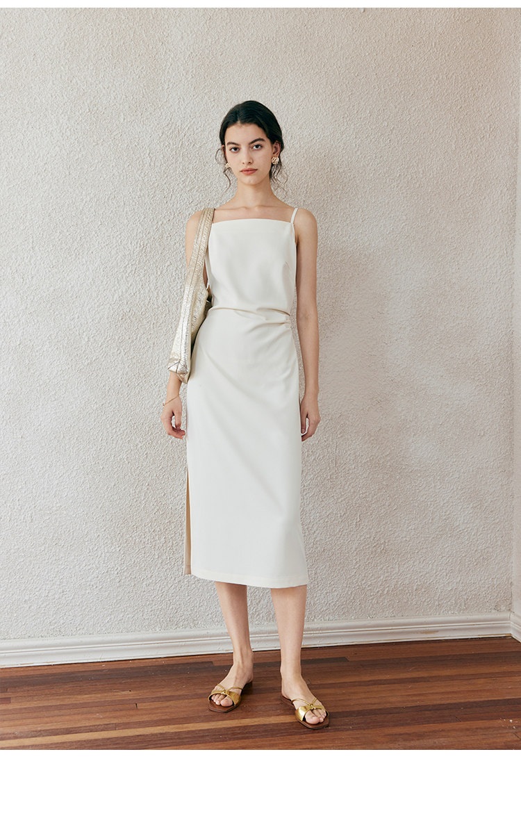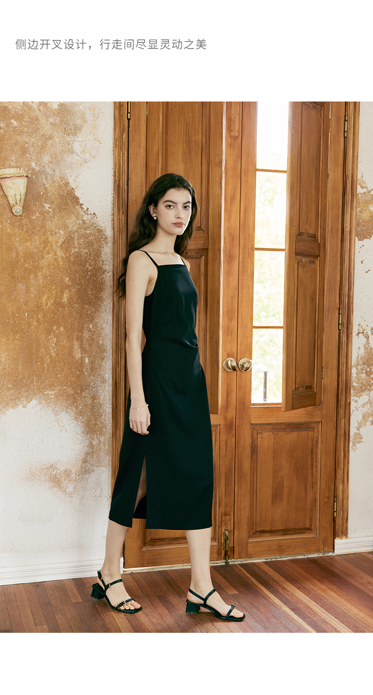 HeyDress侧开叉吊带裙女夏季法式简约高级立体裁剪优雅气质裙子