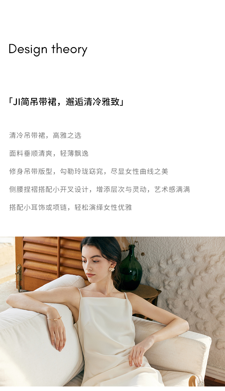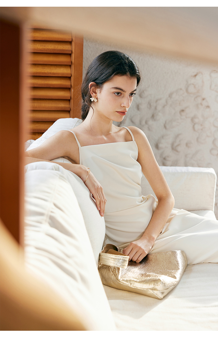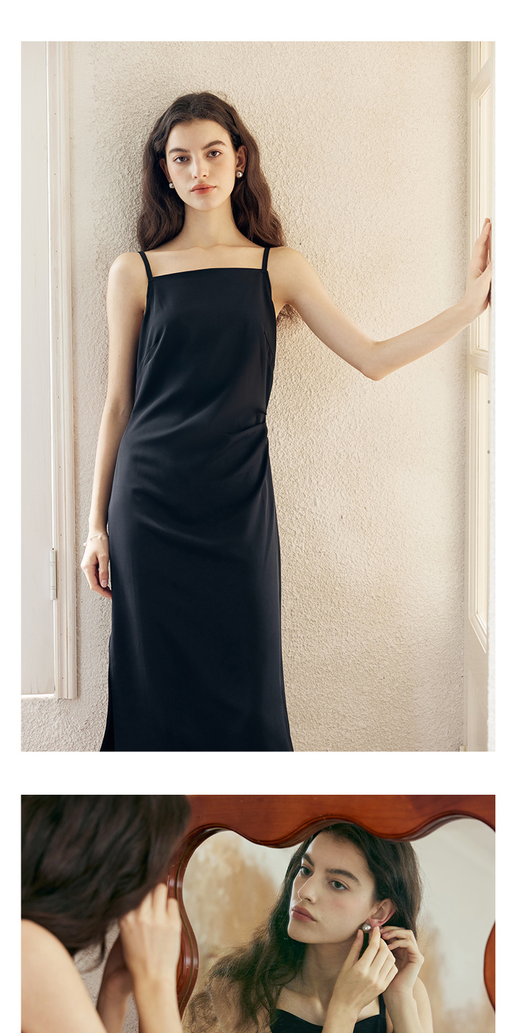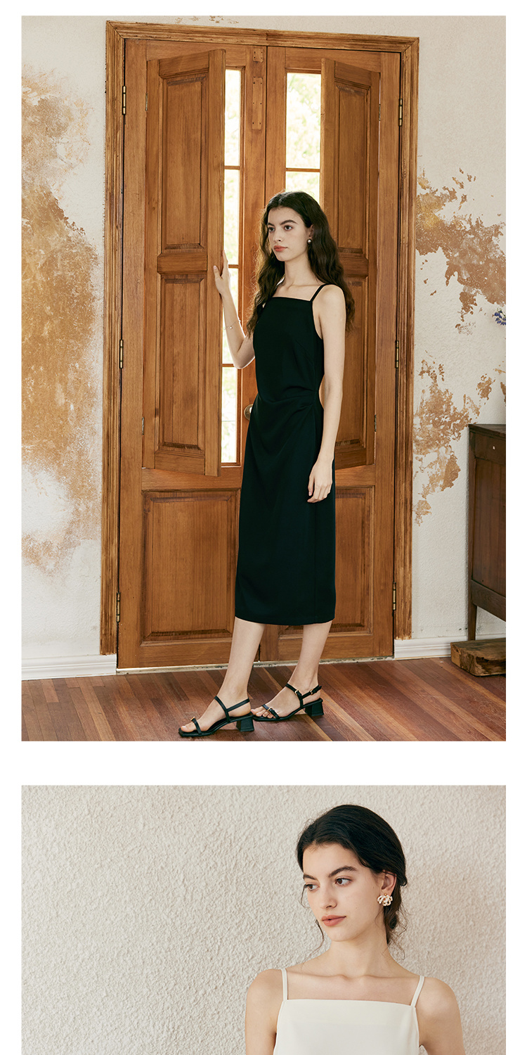 HeyDress侧开叉吊带裙女夏季法式简约高级立体裁剪优雅气质裙子