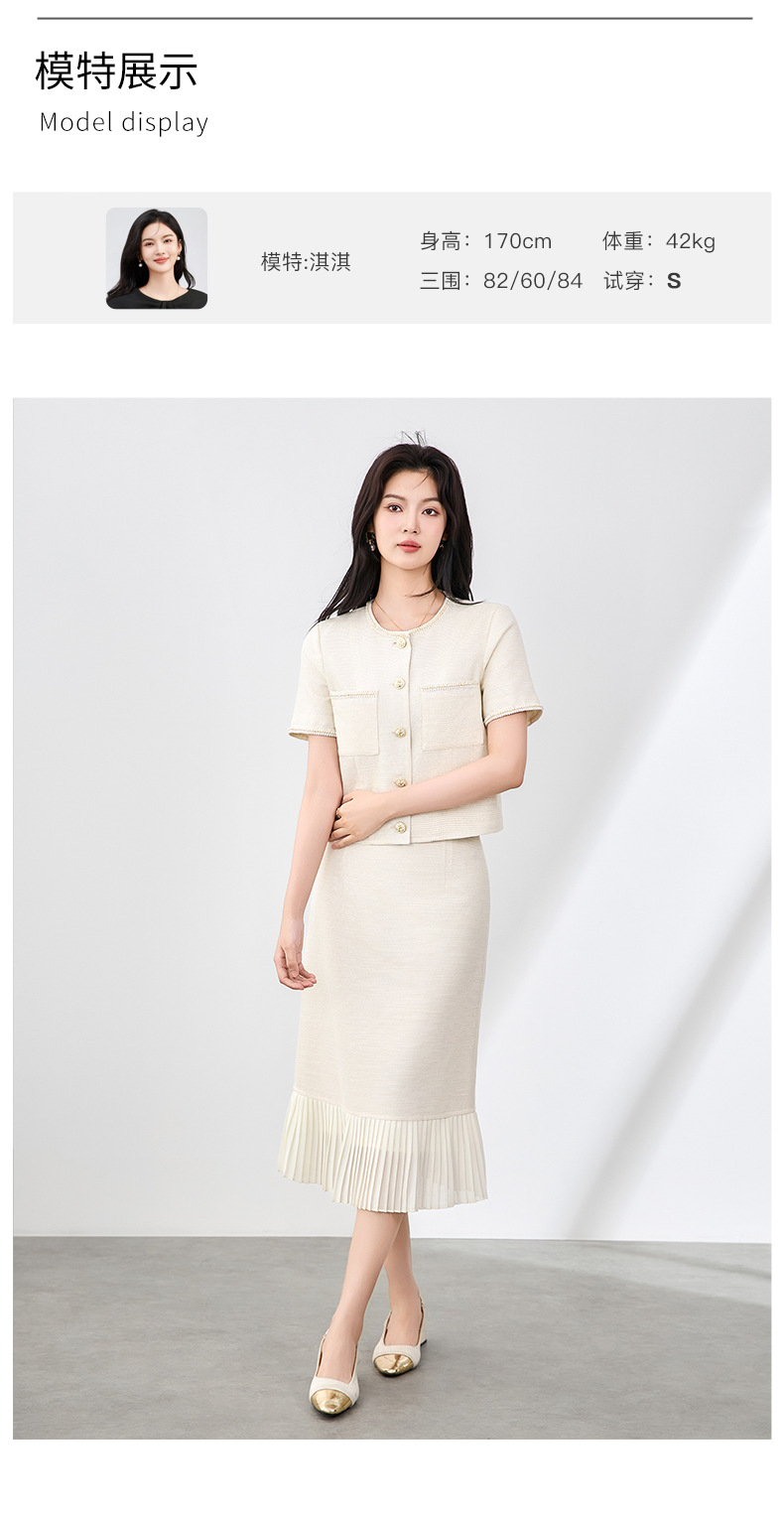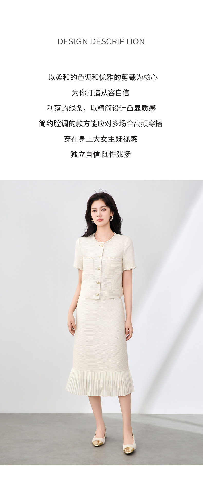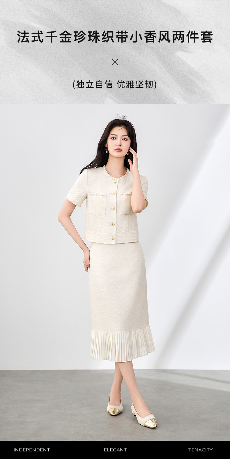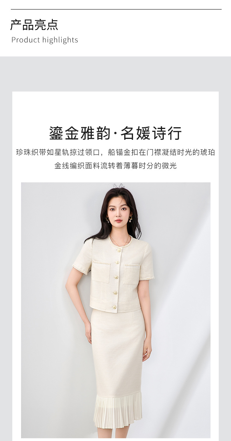 「高货wl」全新升级【铂金会员395/天猫529/差价134】(99425)洛诗琳法式名媛小香风通勤小外套压褶直筒半身裙两件套女