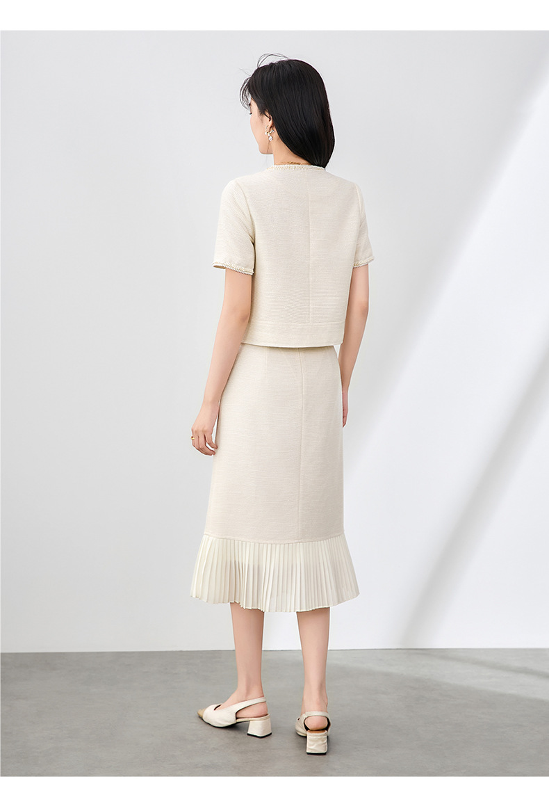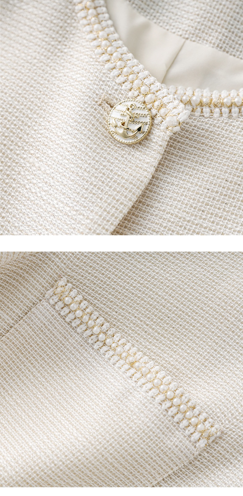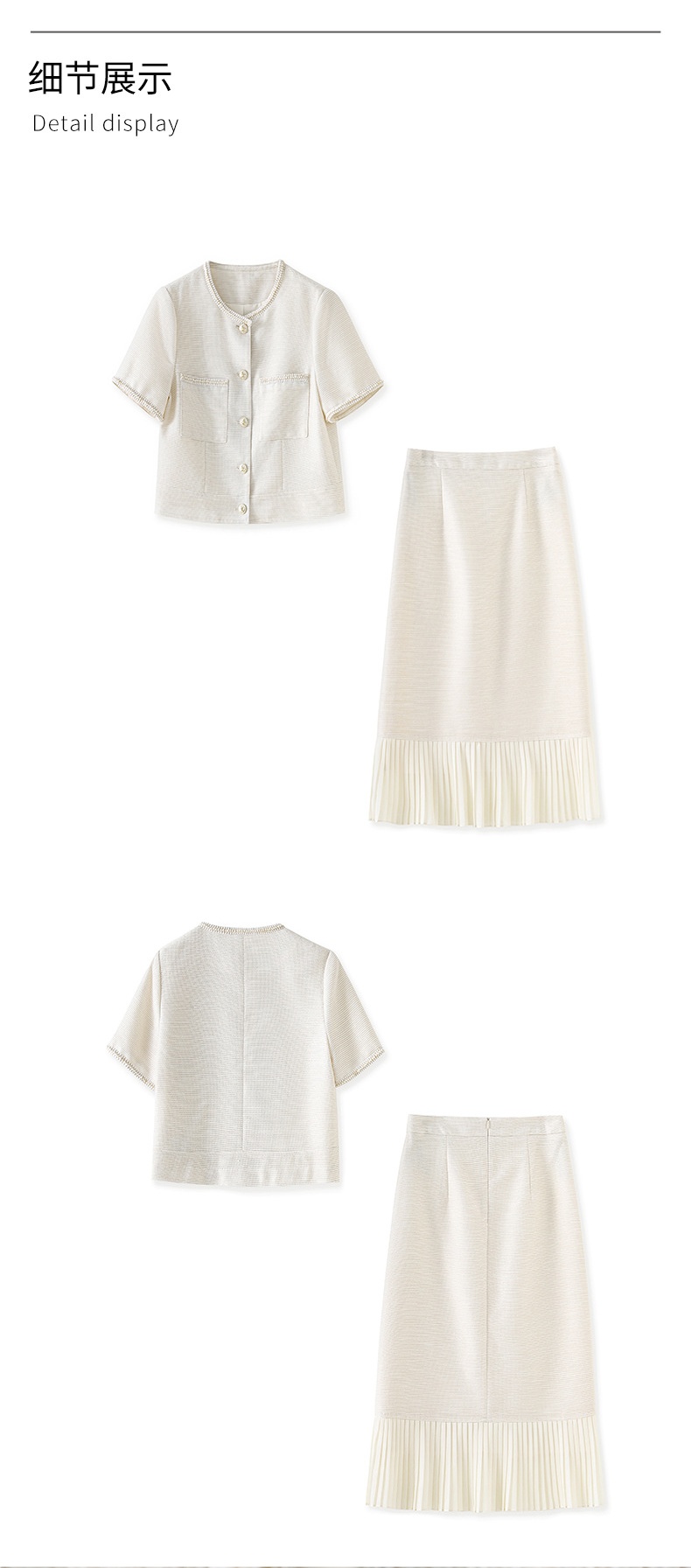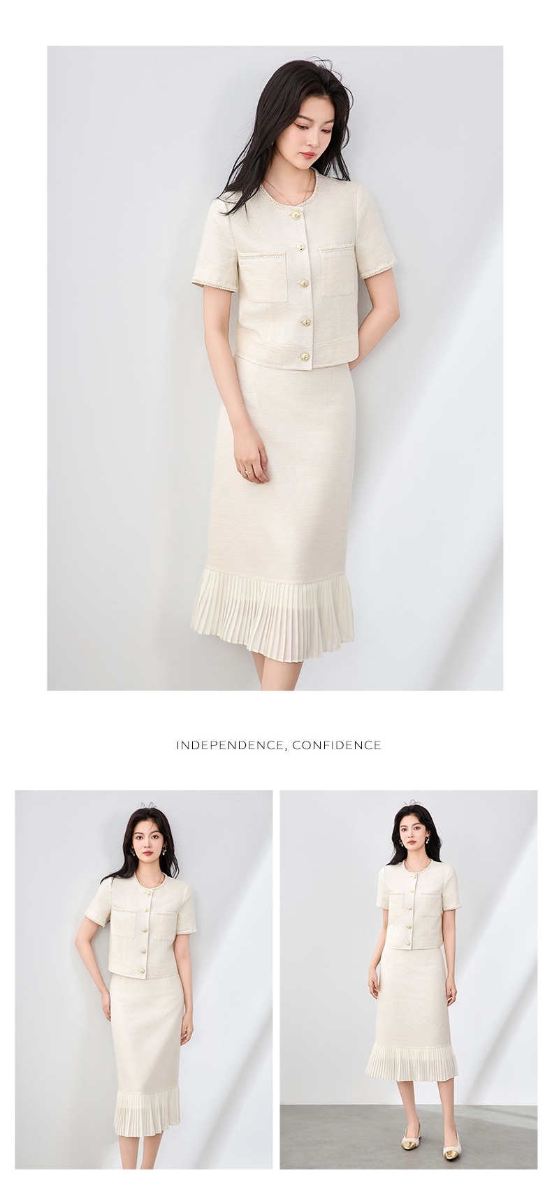 「高货wl」全新升级【铂金会员395/天猫529/差价134】(99425)洛诗琳法式名媛小香风通勤小外套压褶直筒半身裙两件套女
