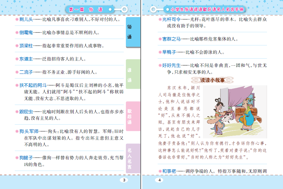 本书以新课标为基础,针对小学语文的写作特点,精选了小学生日常生活和学生课外读物中常见的好词好句好段、名人名言、谚语和歇后语,适用于全国各地小学生的语文学习需要,旨在提升小学生的写作能力和语文素养。本书每部分按不同的主题进行编排,方便学生在写作时进行查阅。同时,附有许多名人、谚语、歇后语的小故事和漫画,帮助小学生拓展知识,提升鉴赏和审美能力。