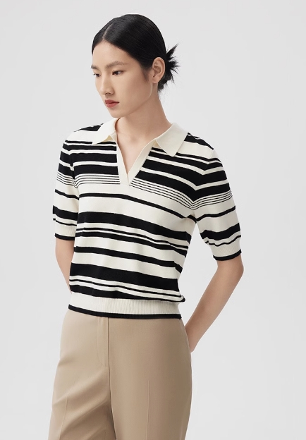 朗姿条纹POLO衫套头针织衫LCEK05KPR451W11